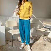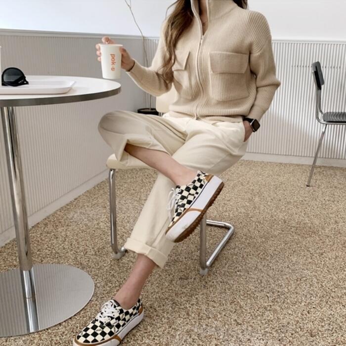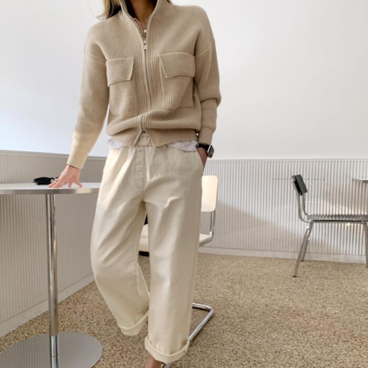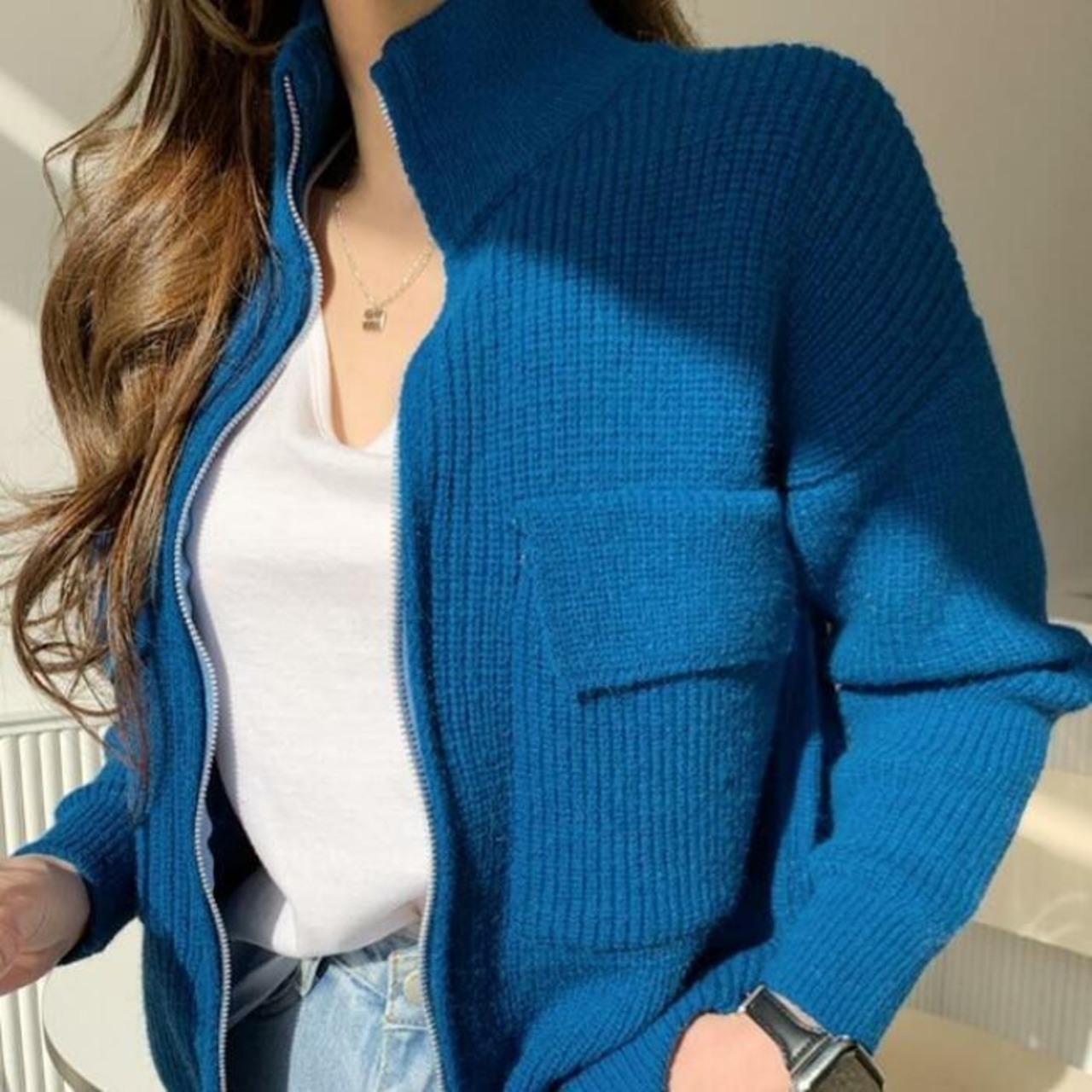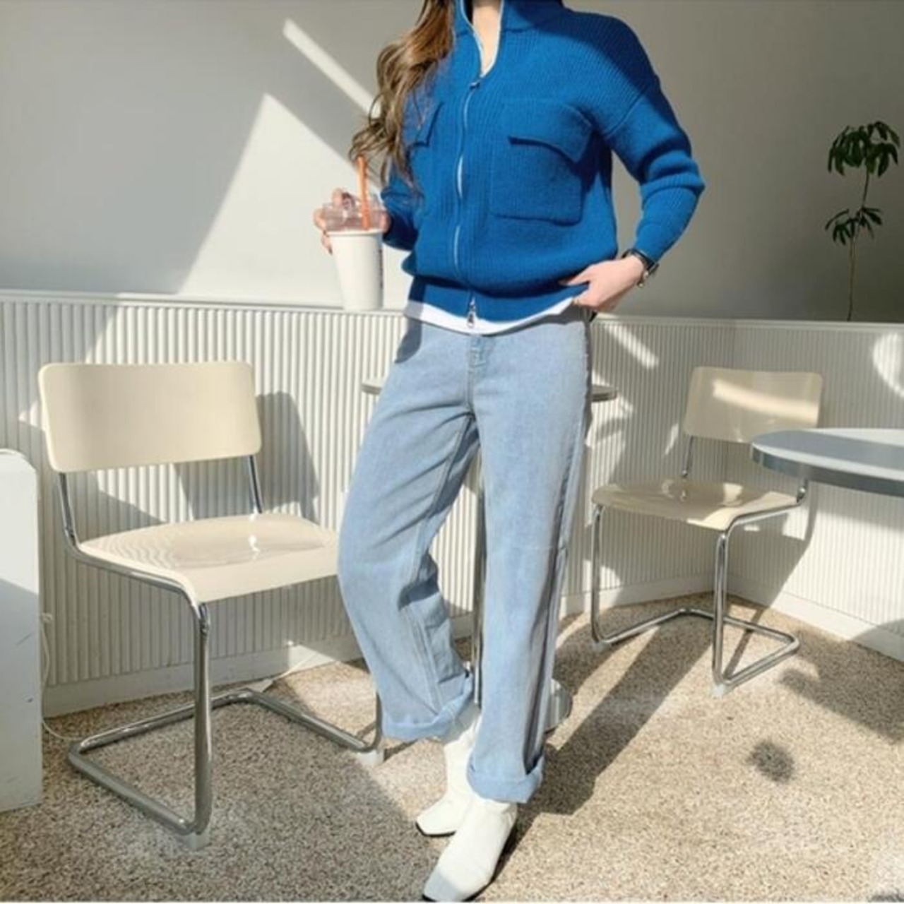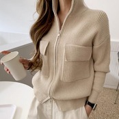 ちょっと肌寒い日にぴったりのジップアップニットジャケット。
