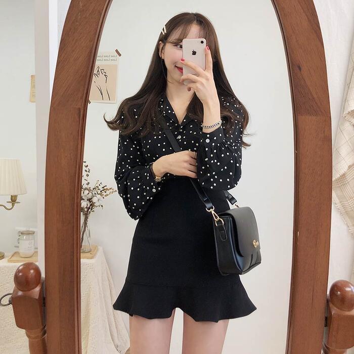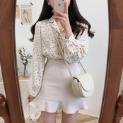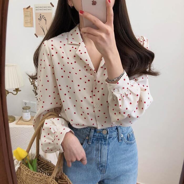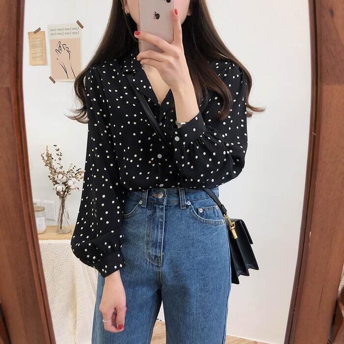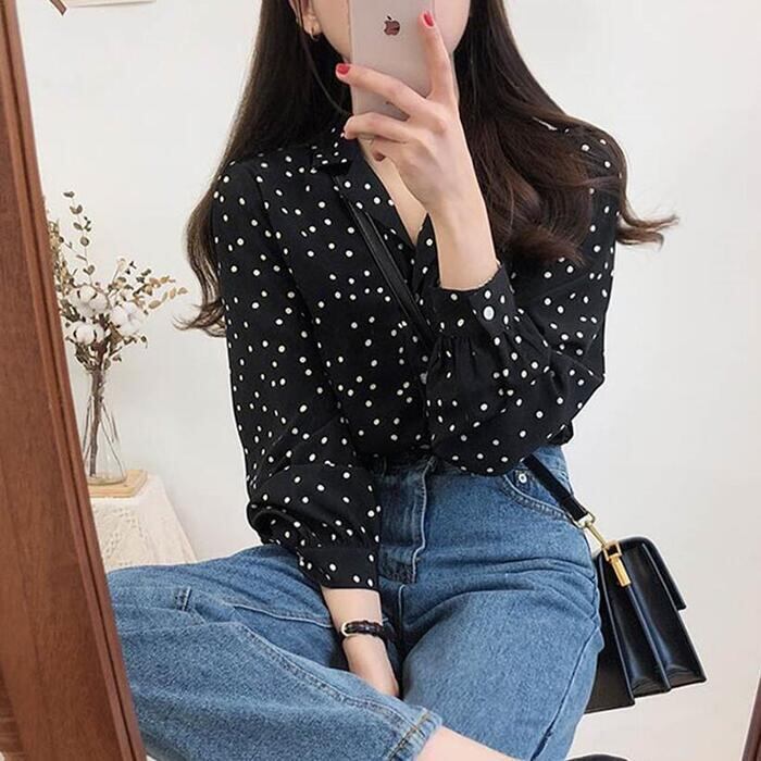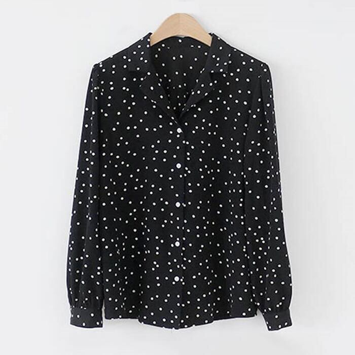 全2色 大きいサイズトップス ブラウス シャツ ドット 開襟 羽織り レディース エレガント きれいめ カジュアル おしゃれ 長袖 大人 可愛い フェミニン ガーリー オフィス 通勤 ナチュラル ホワイト 白 ブラック 黒 春 秋 冬 20代 30代 40代 50代