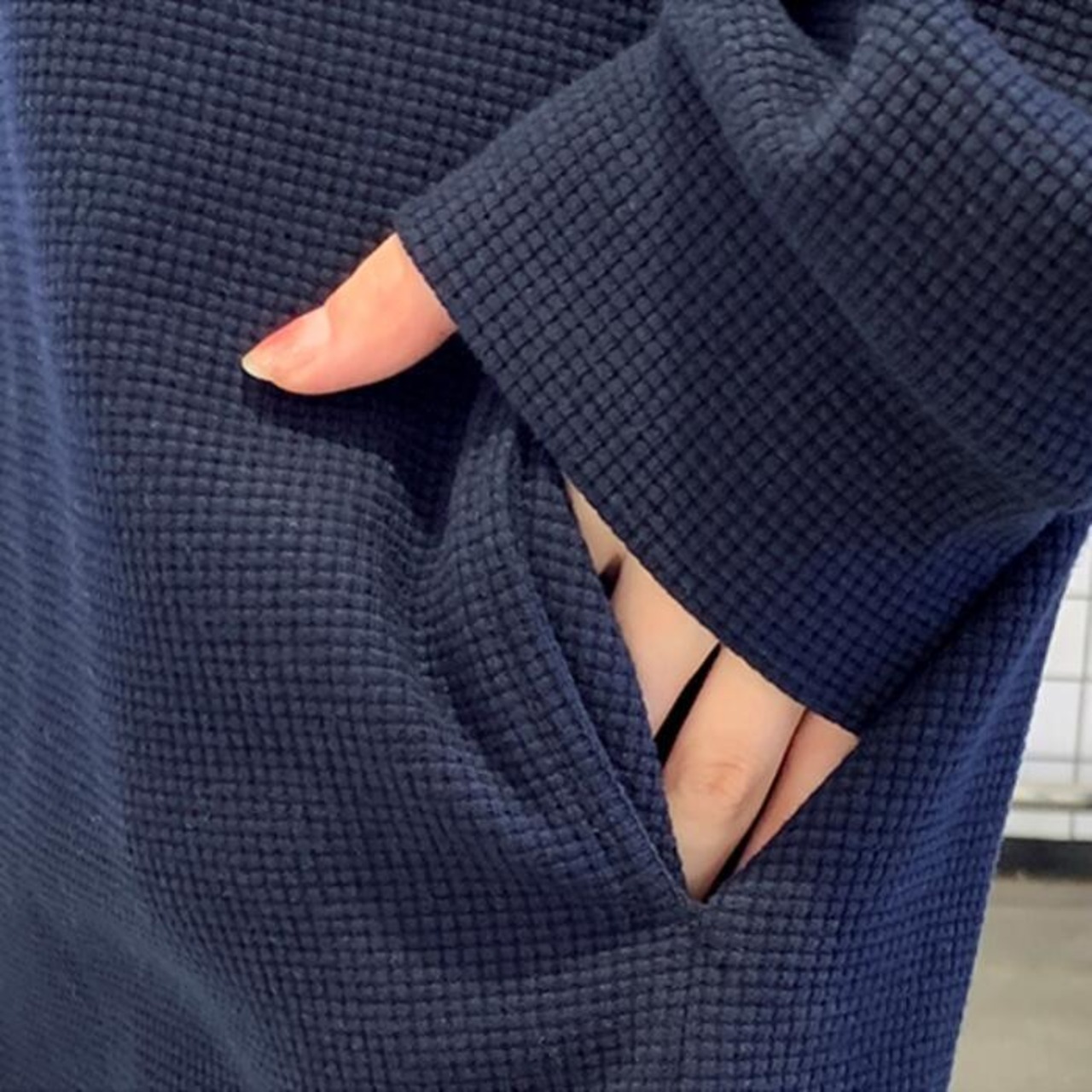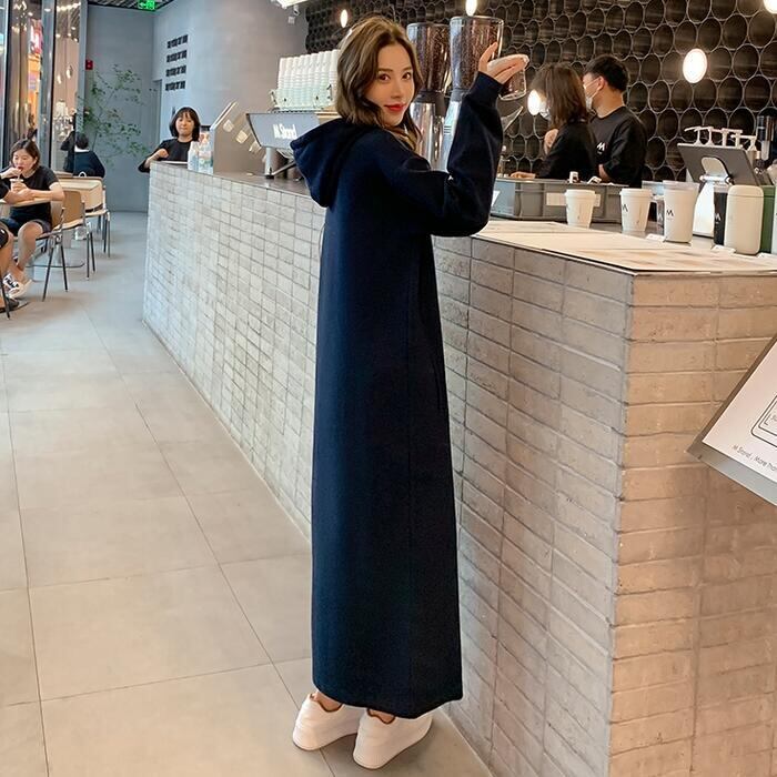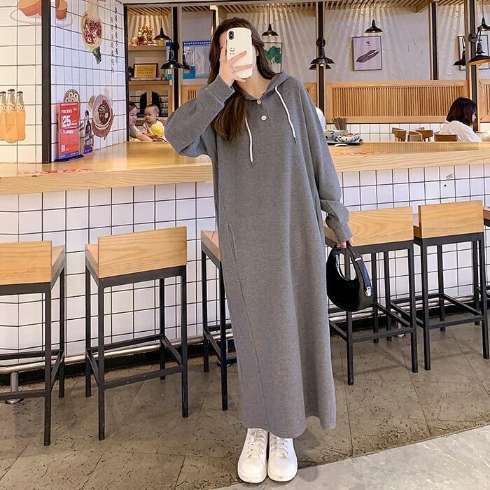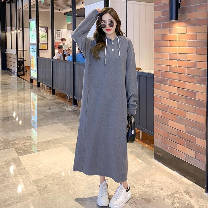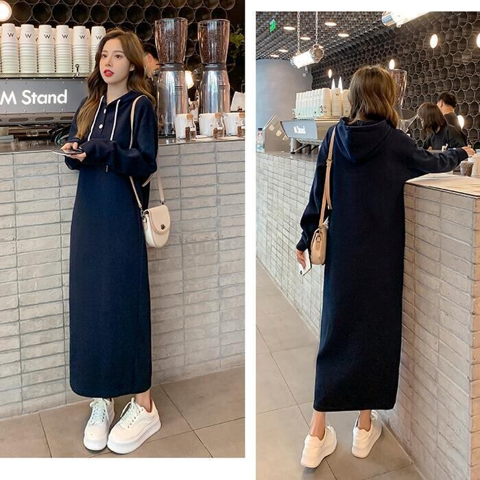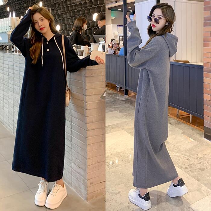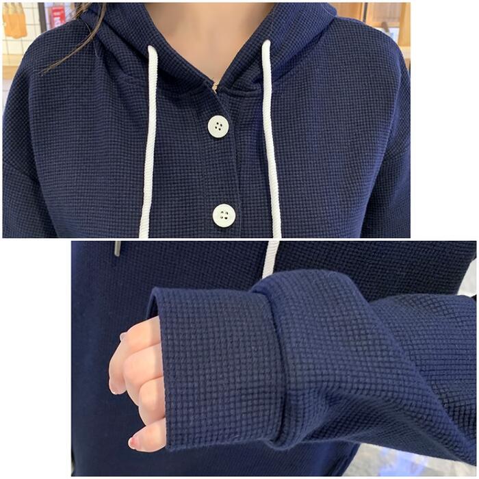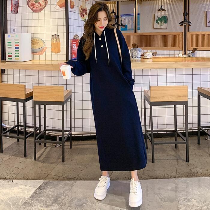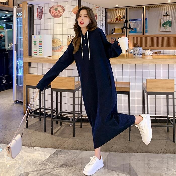 全2種2色 大きいサイズワンピース ロングワンピ フード スウェット パーカー 袖あり ワッフル サーマル レディース きれいめ カジュアル ロング丈 長袖 おしゃれ 大人 可愛い ワンピ 裏起毛 ゆったり 体型カバー ブルー ネイビー グレー 春 秋 冬 20代 30代 40代 50代