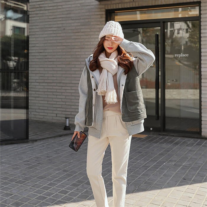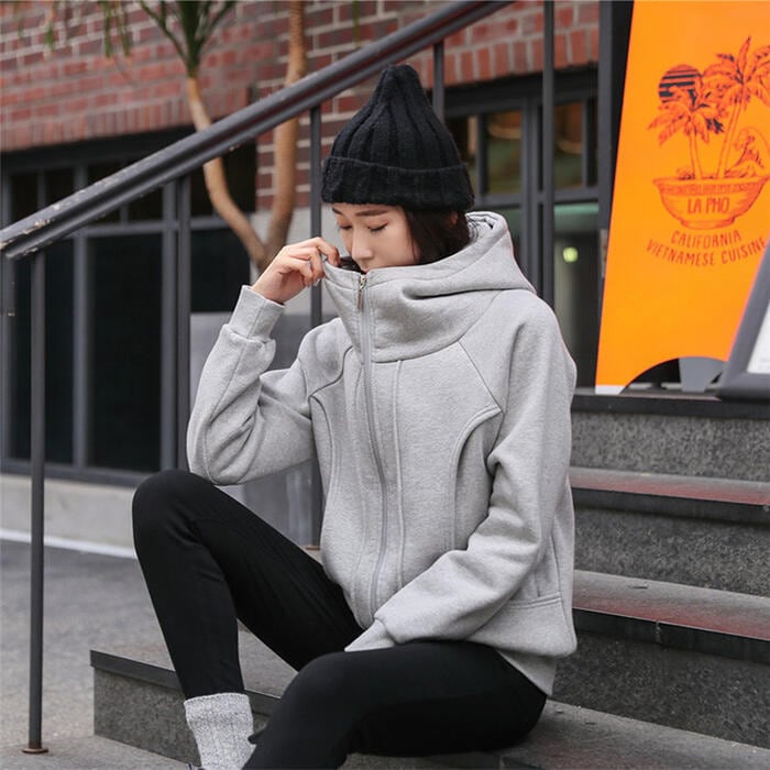 ボリューム感のあるハイネックデザインがポイントのジップアップパーカー。