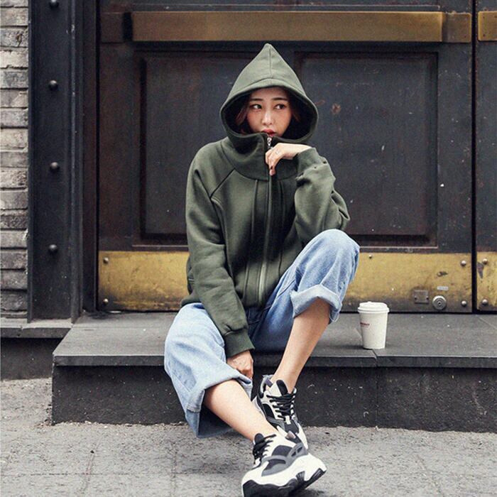全4色 大きいサイズアウター コート ジャケット トップス パーカー ジップアップ レディース ハイネック きれいめ カジュアル おしゃれ 長袖 大人 暖かい 裏起毛 かっこいい ネイビー グリーン 緑 グレー ブラック 黒 春 秋 冬 20代 30代 40代 50代