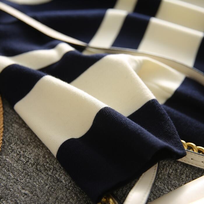 爽やかなボーダーデザインのニットワンピース。