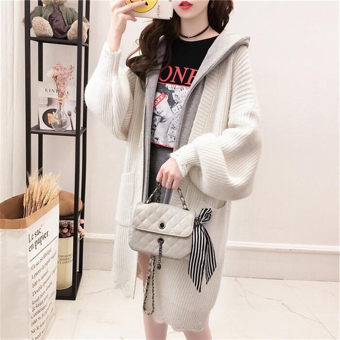 ニットカーデにフードを合わせたレイヤード風デザインが新鮮な一枚。