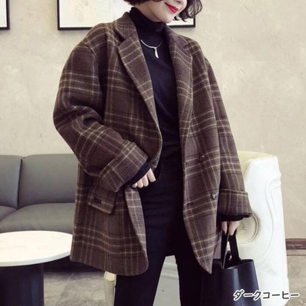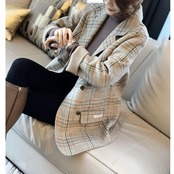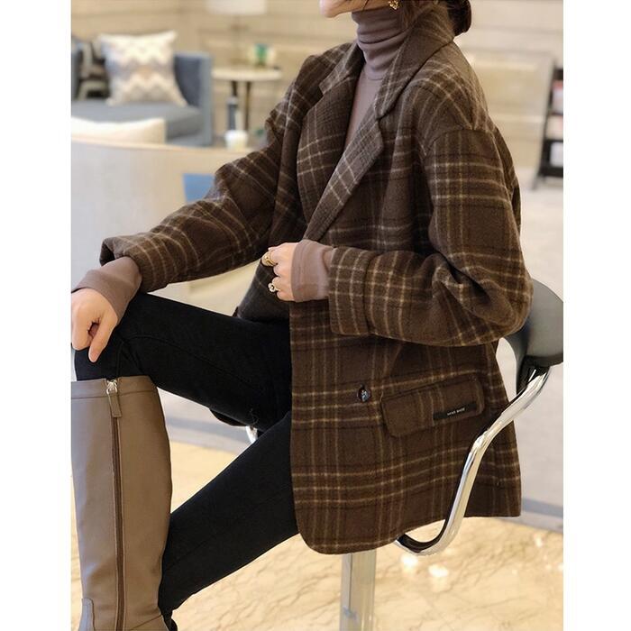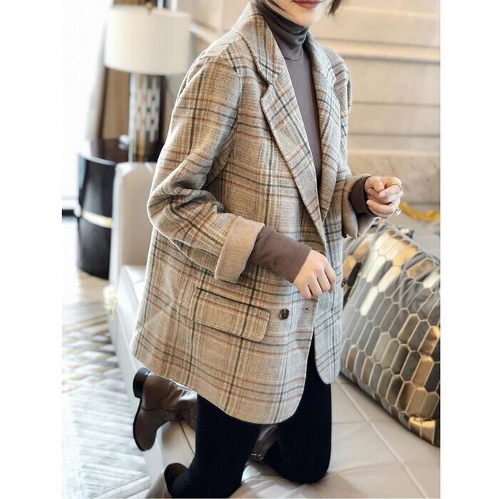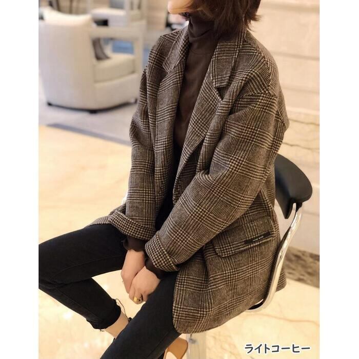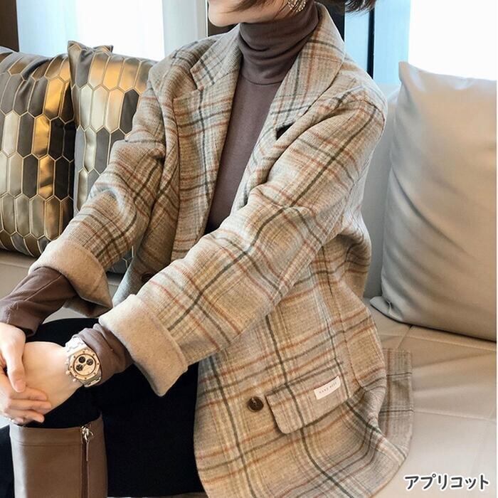 全3色 ウール アウター テーラード ジャケット コート チェスター チェック レディース エレガント きれいめ カジュアル おしゃれ 長袖 大人 可愛い トラッド かっこいい 体型カバー 通勤 ベージュ ブラウン 春 秋 冬 20代 30代 40代 50代