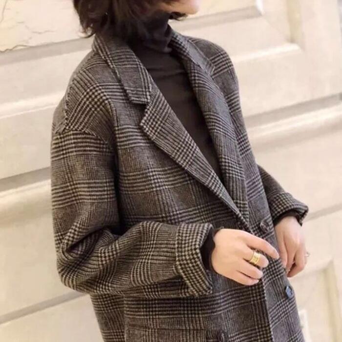 ウールで暖かいチェック柄テーラードジャケット。