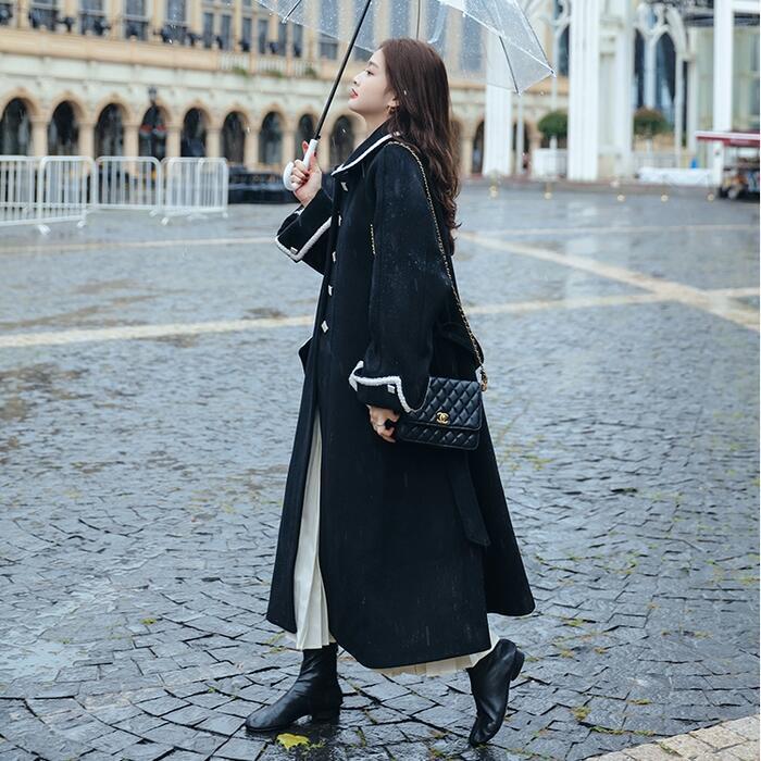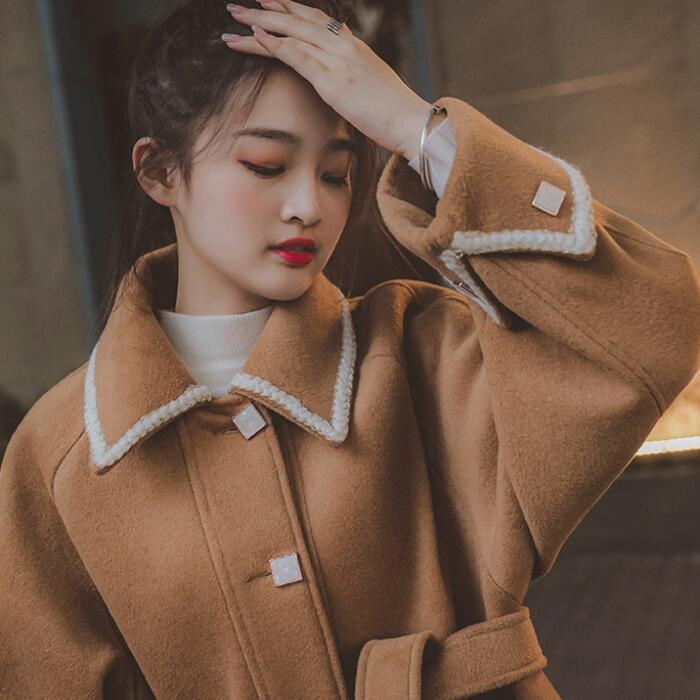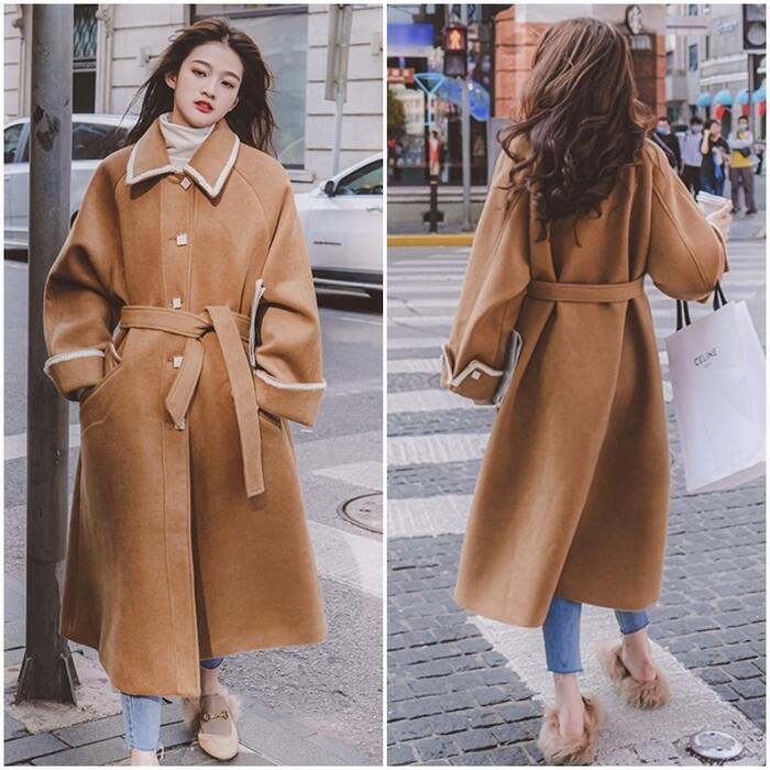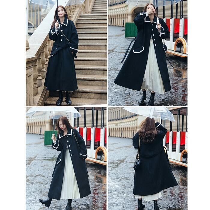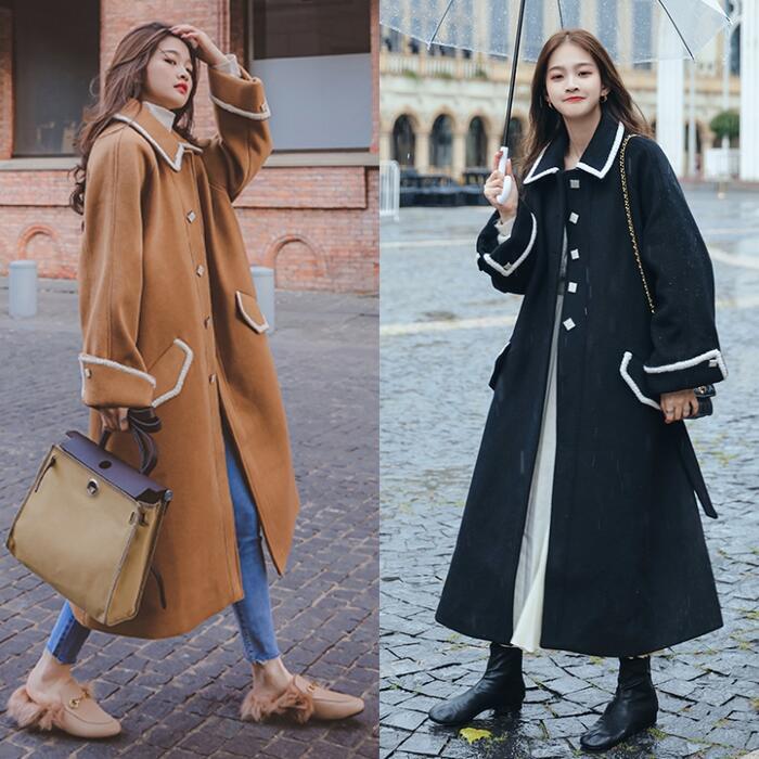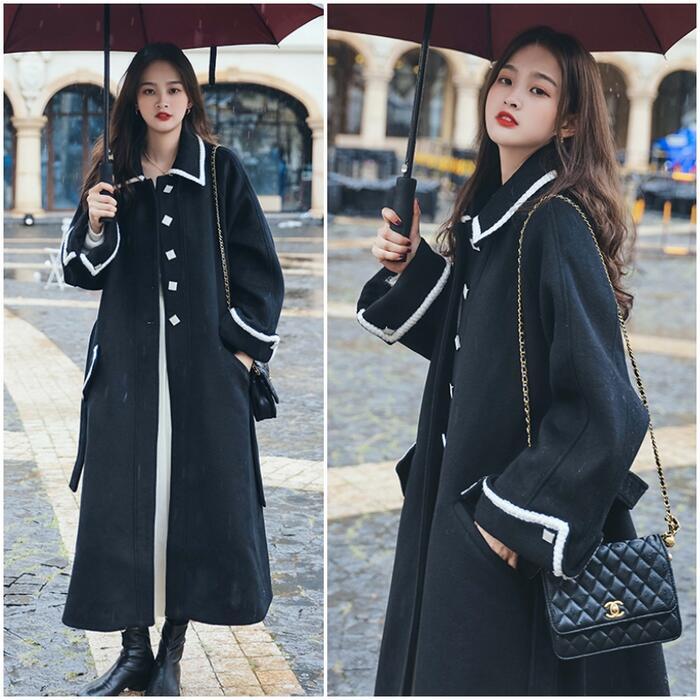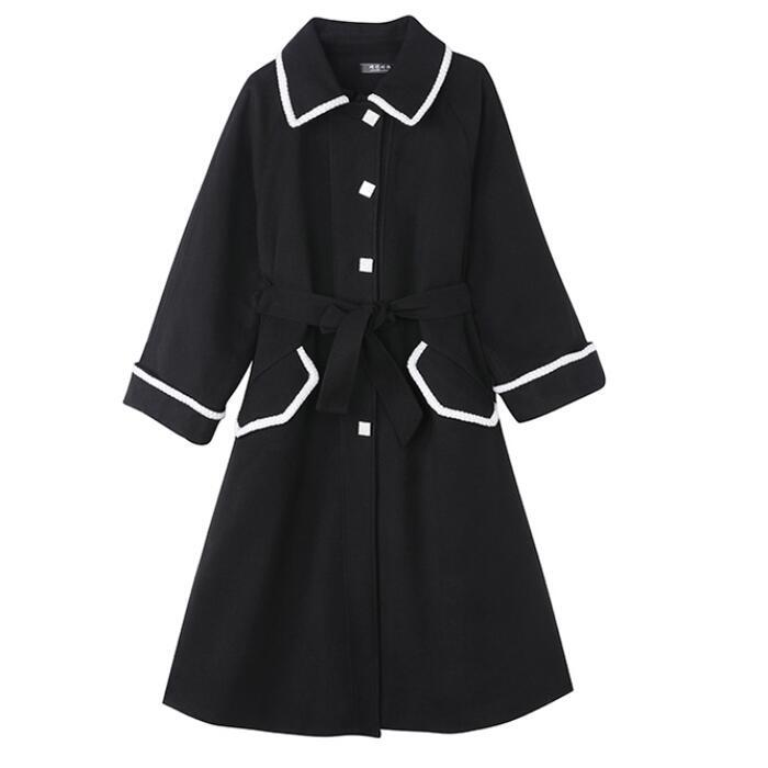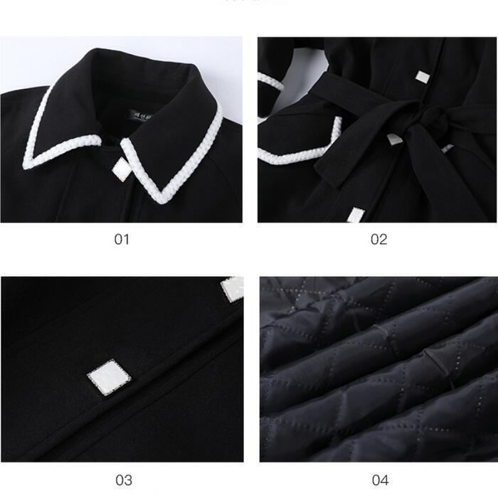 全2色 大きいサイズアウター コート チェスター ライン ステンカラー レディース きれいめ カジュアル おしゃれ 長袖 大人 可愛い ロング丈 ウエストベルト 羽織り ゆったり Aライン 配色 ブラウン ブラック 黒 春 秋 冬 20代 30代 40代 50代