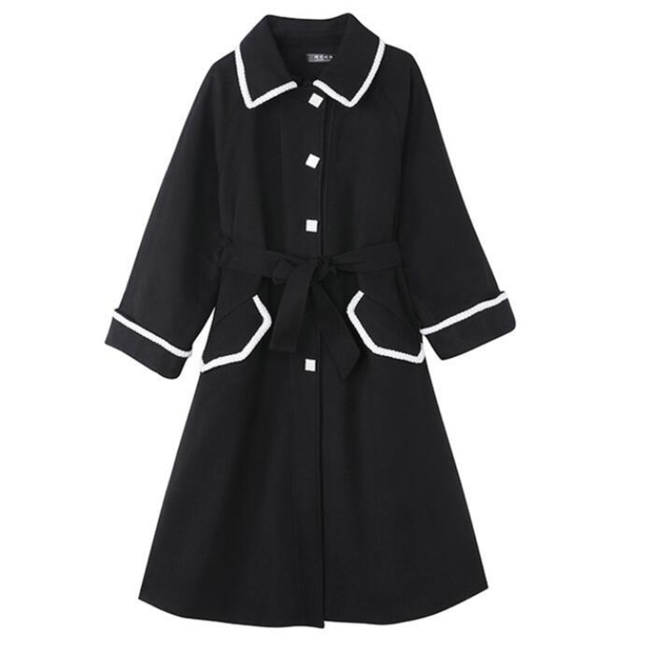 配色ラインがアクセントになったステンカラーコート。