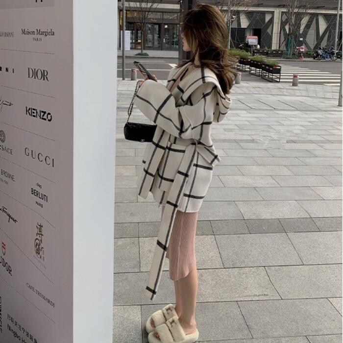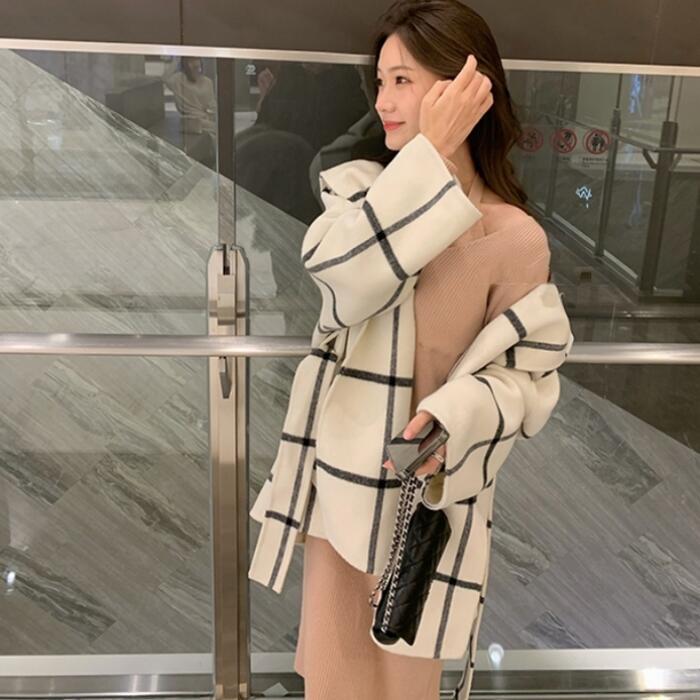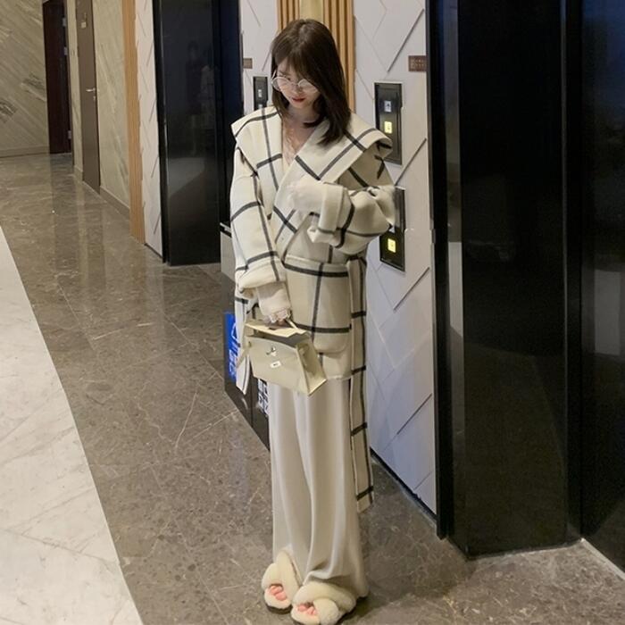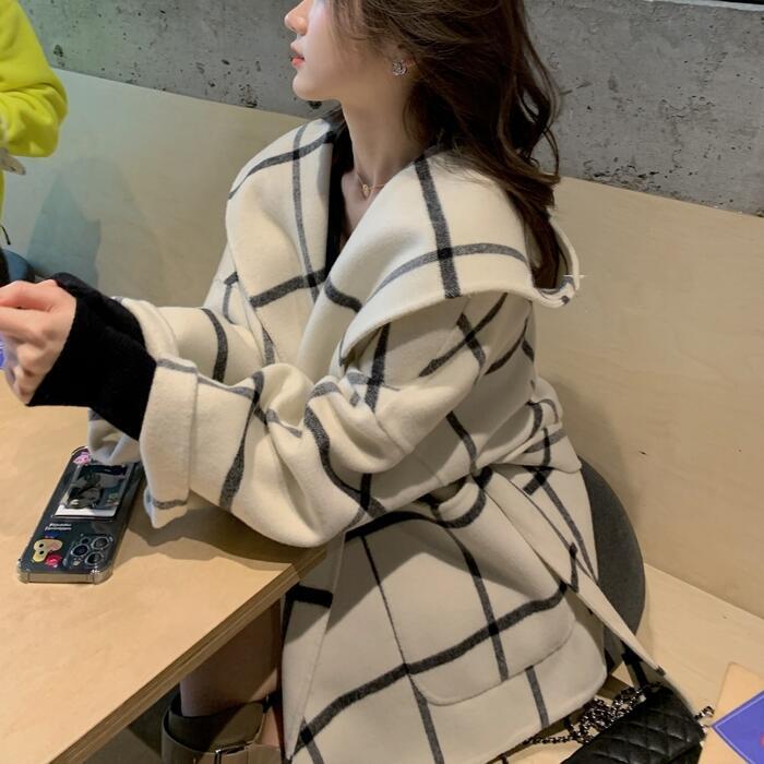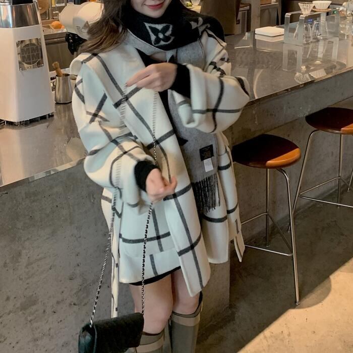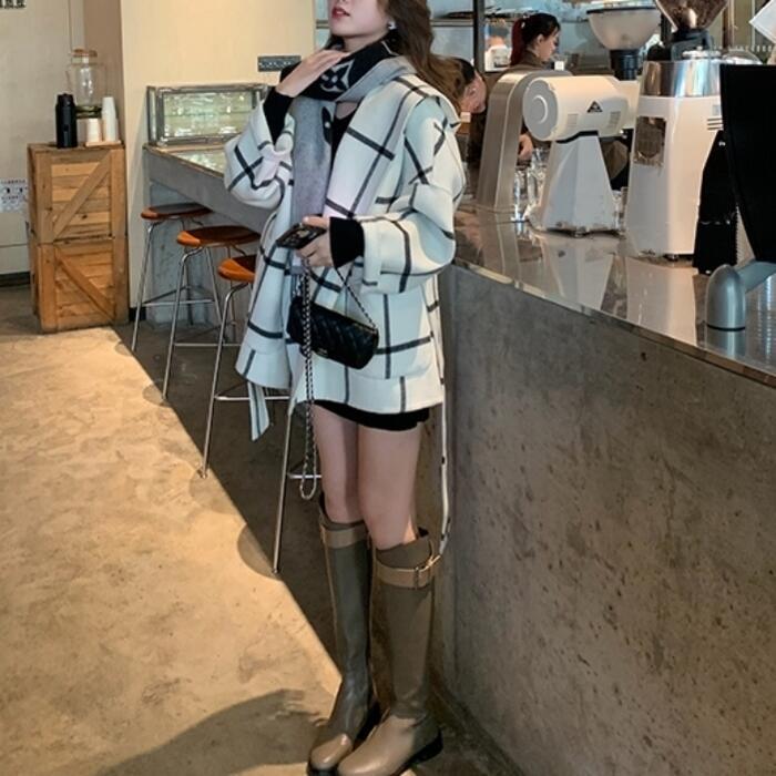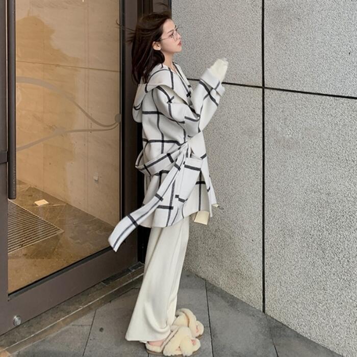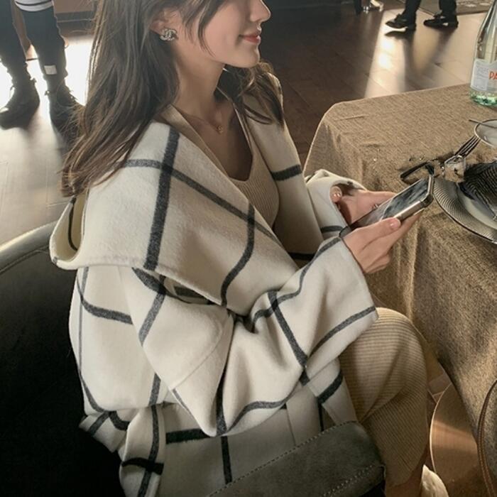 ウール アウター ジャケット コート ノーカラー チェック フード レディース エレガント きれいめ カジュアル おしゃれ 長袖 大人 可愛い 暖かい ショート丈 かっこいい ゆったり 体型カバー 通勤 ホワイト 白 春 秋 冬 20代 30代 40代 50代