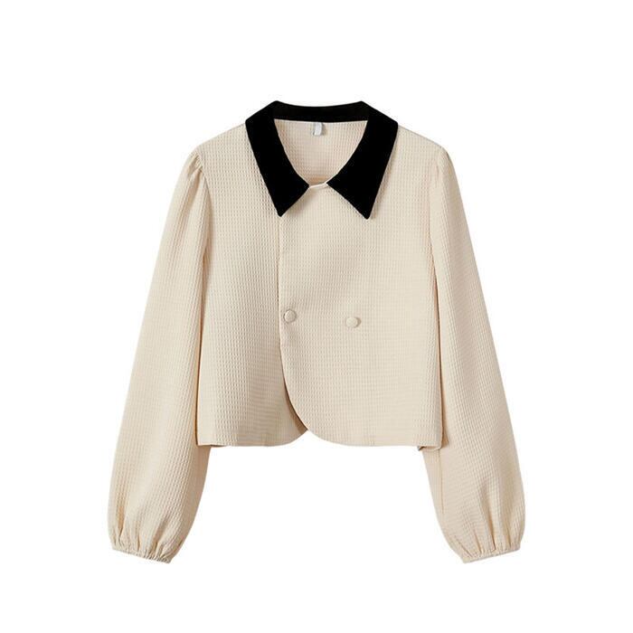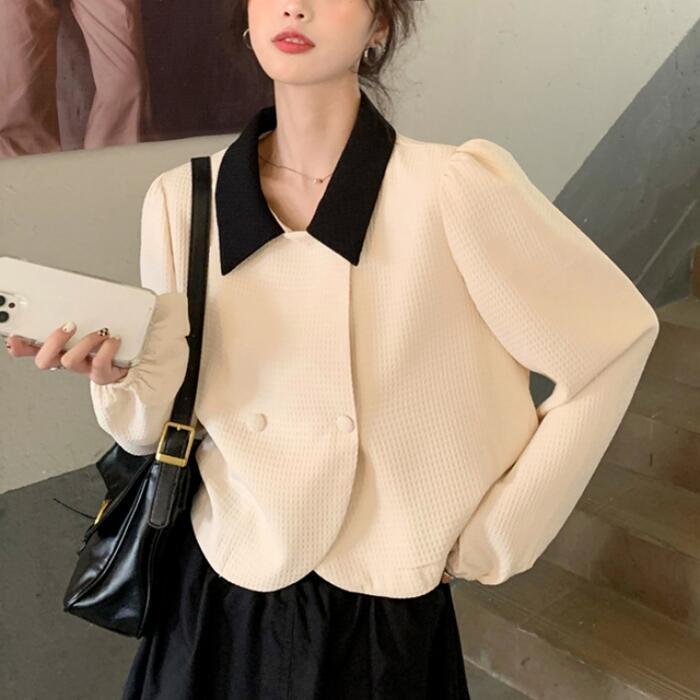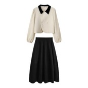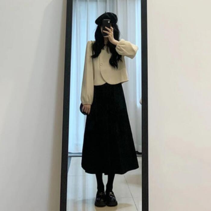 ジャケット&フレアスカートのバイカラーセットアップ。