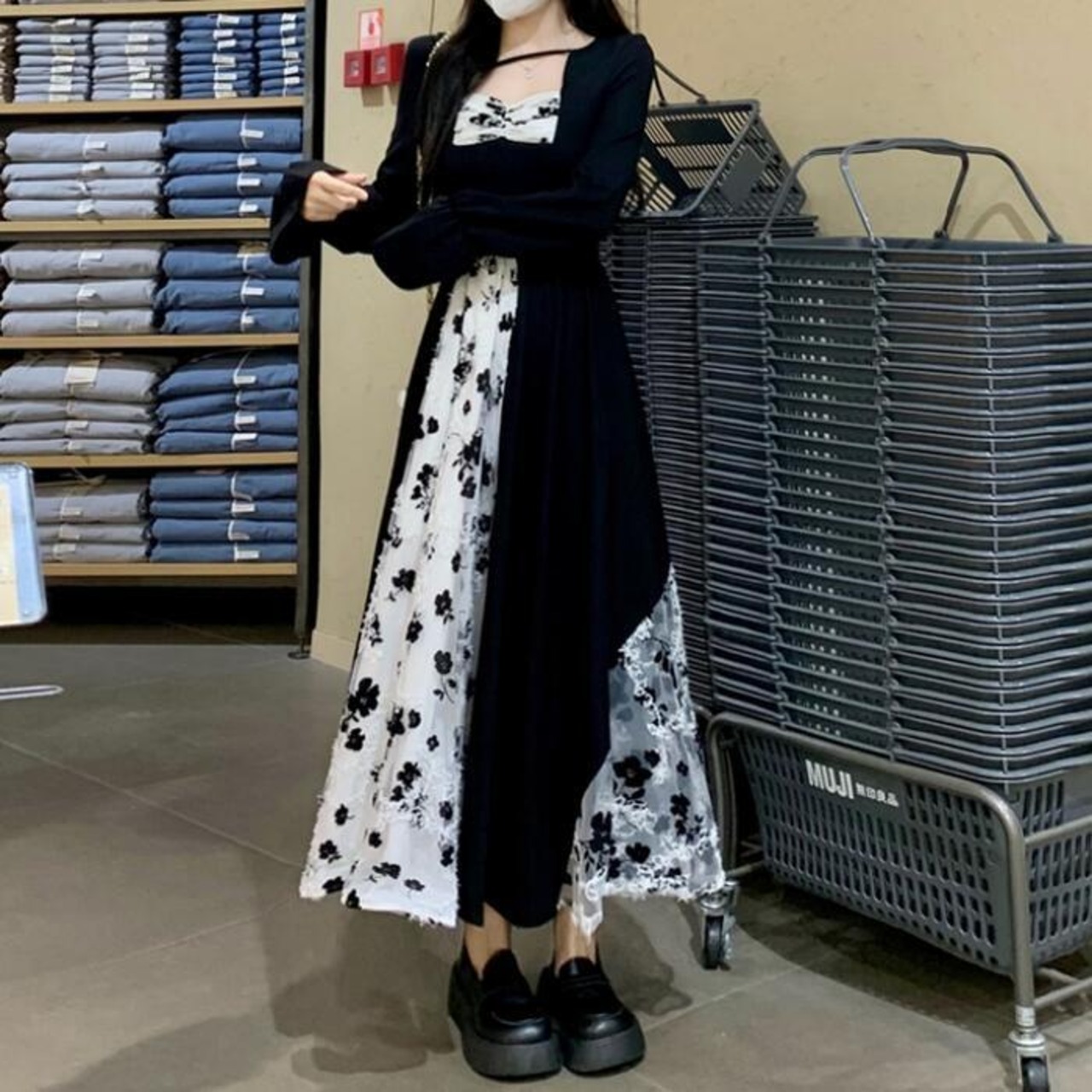 クラシカルな雰囲気漂う花柄MIXワンピース。