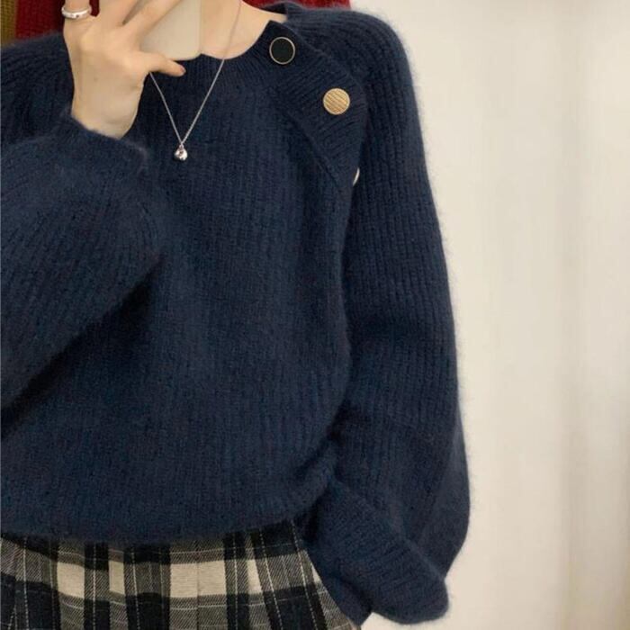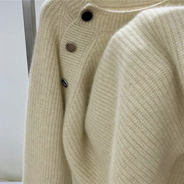 サイドボタンがアクセントになったニットトップス。