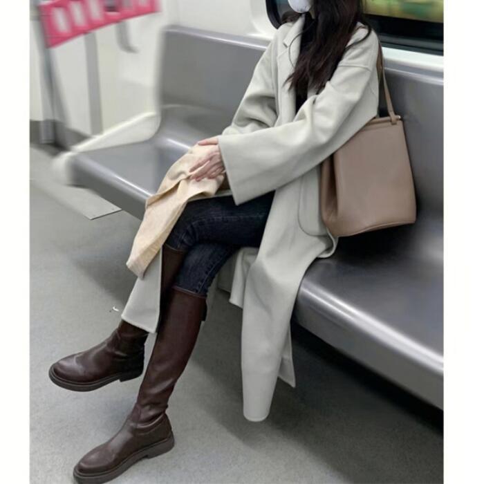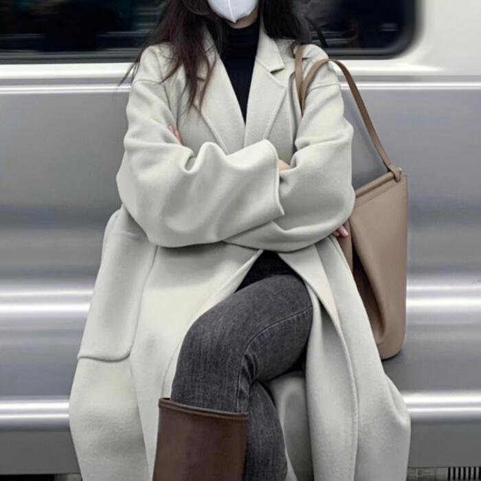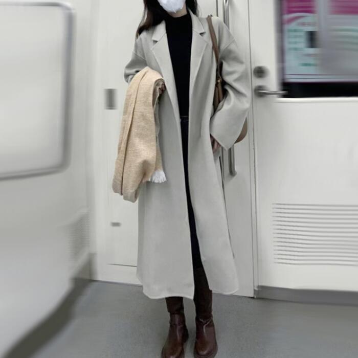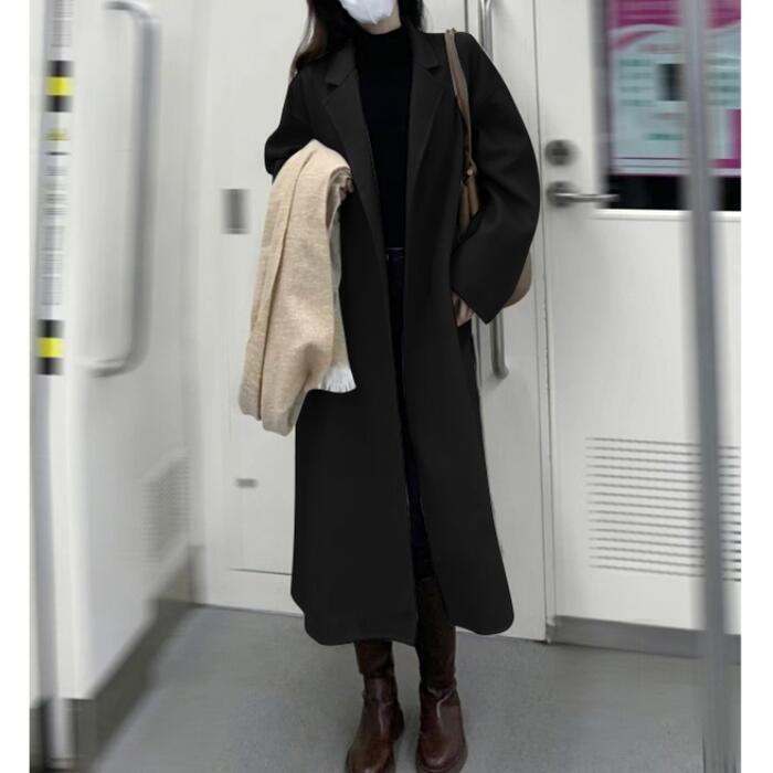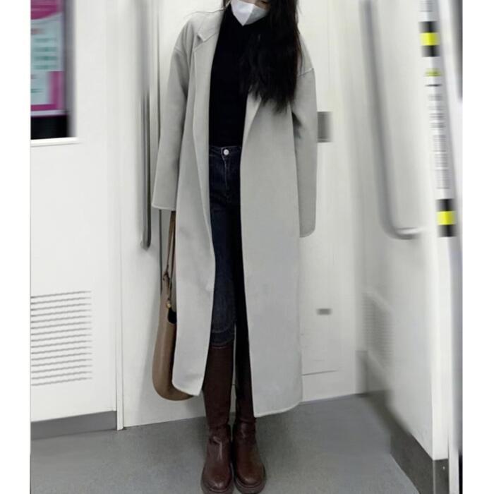 無駄のないシンプルなデザインのロングコート。