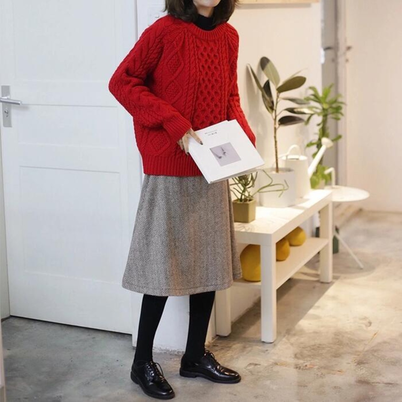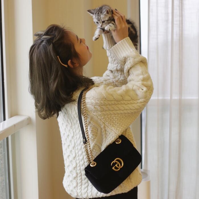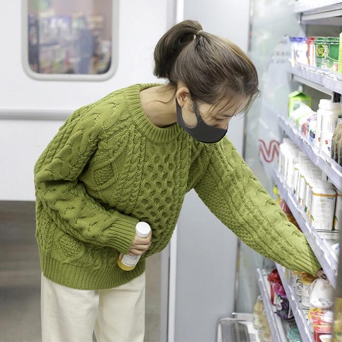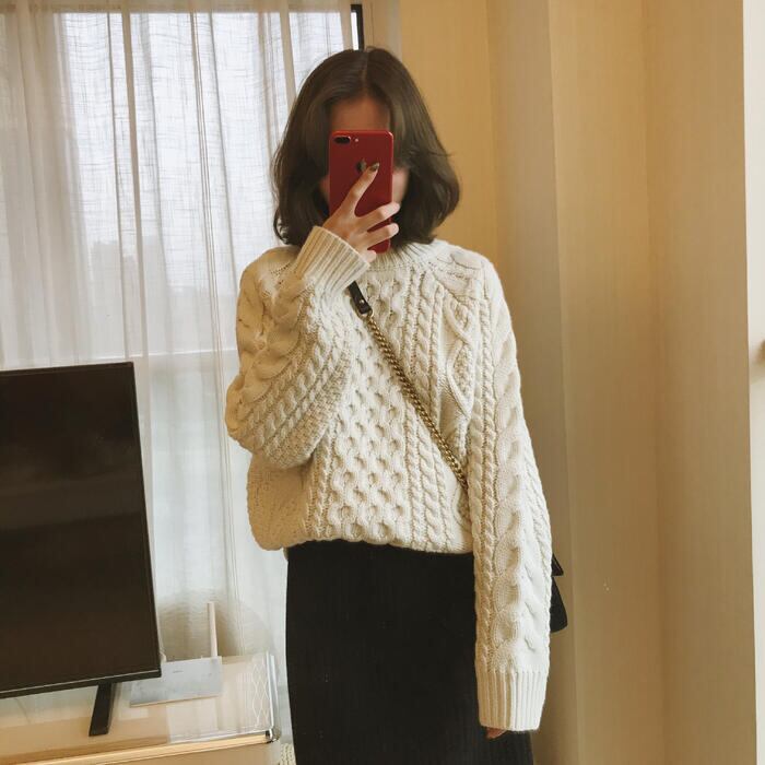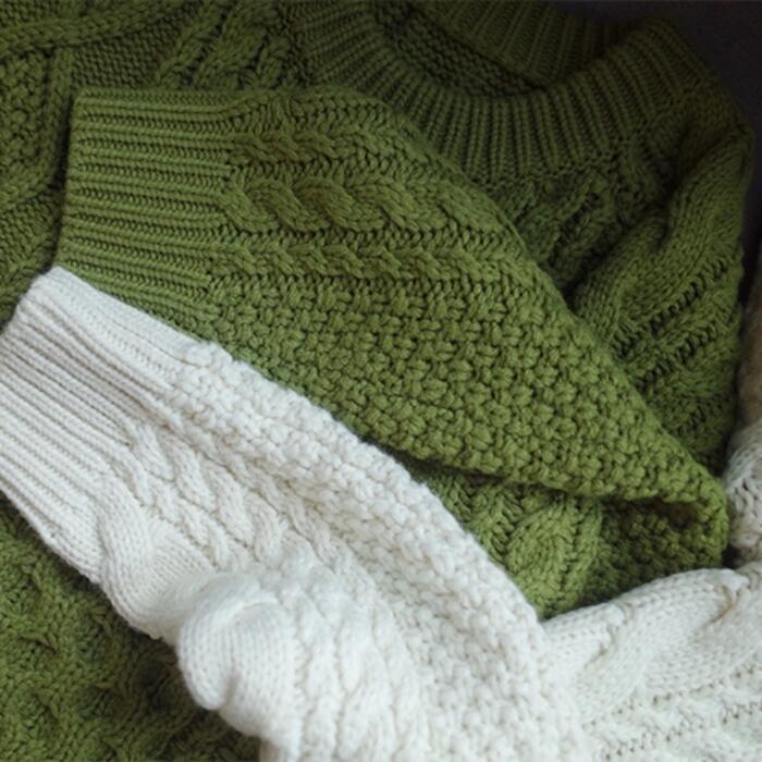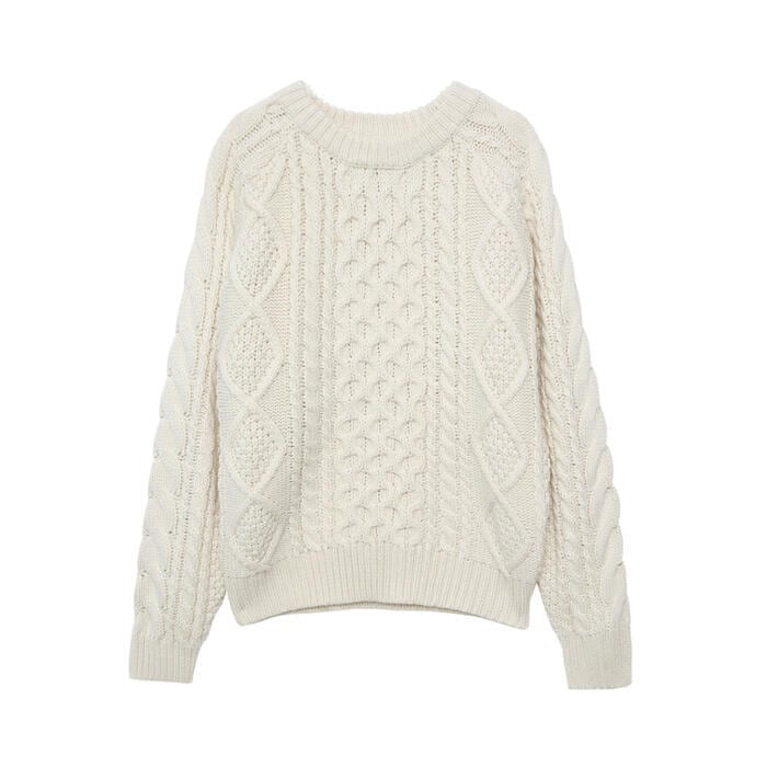 表情豊かなケーブル編みのニットトップス。