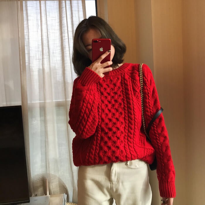 全3色 トップス ニット セーター レディース きれいめ エレガント カジュアル クルーネック ケーブルニット おしゃれ 長袖 大人 可愛い フェミニン シンプル ベーシック ベージュ グリーン 緑 レッド 赤 春 秋 冬 20代 30代 40代 50代