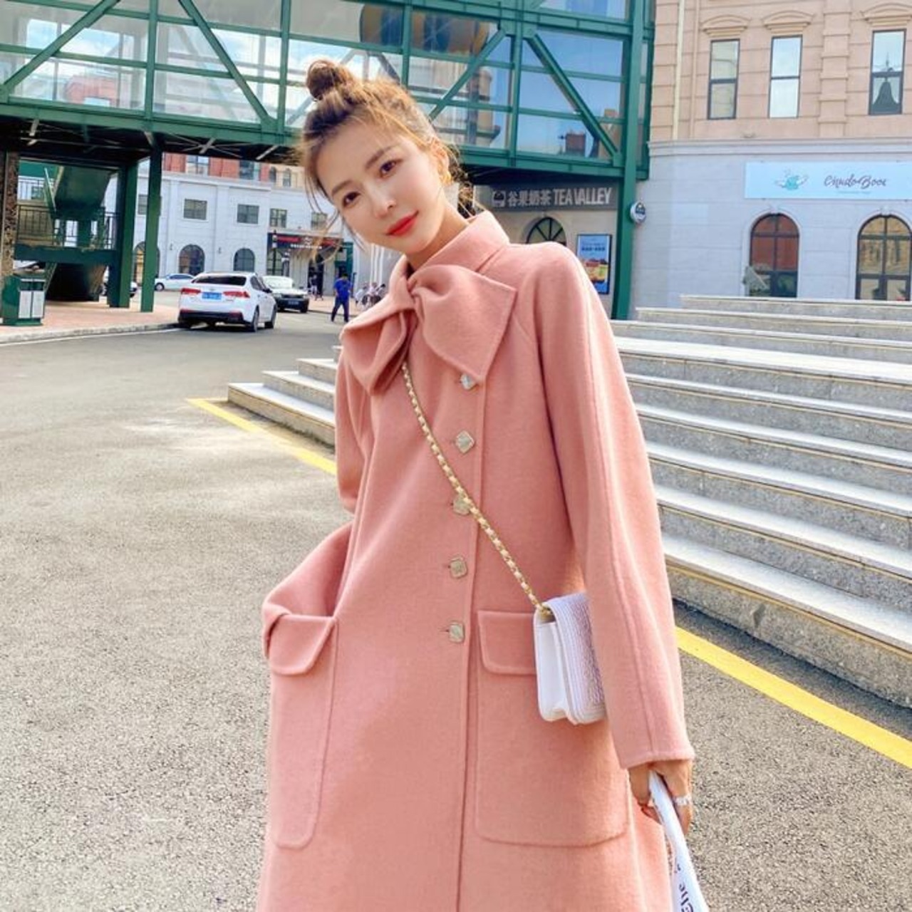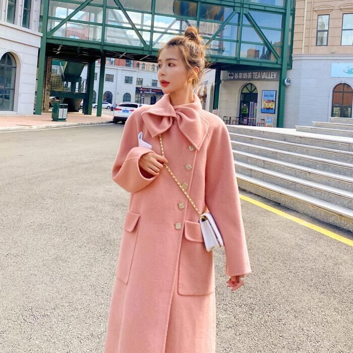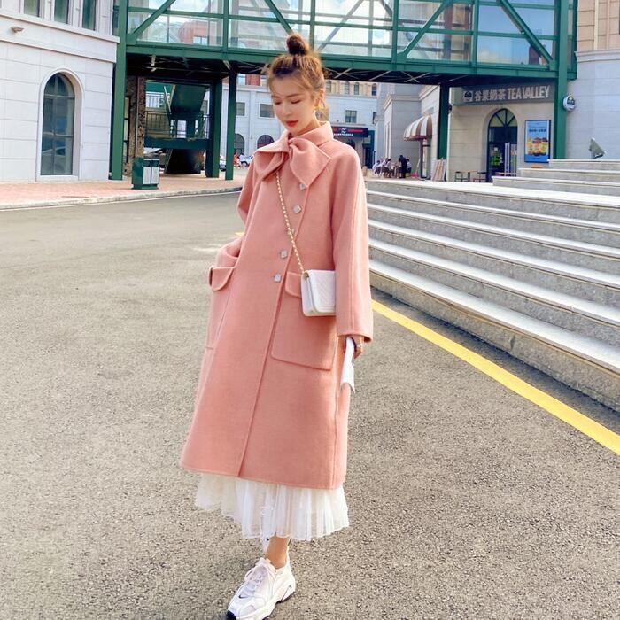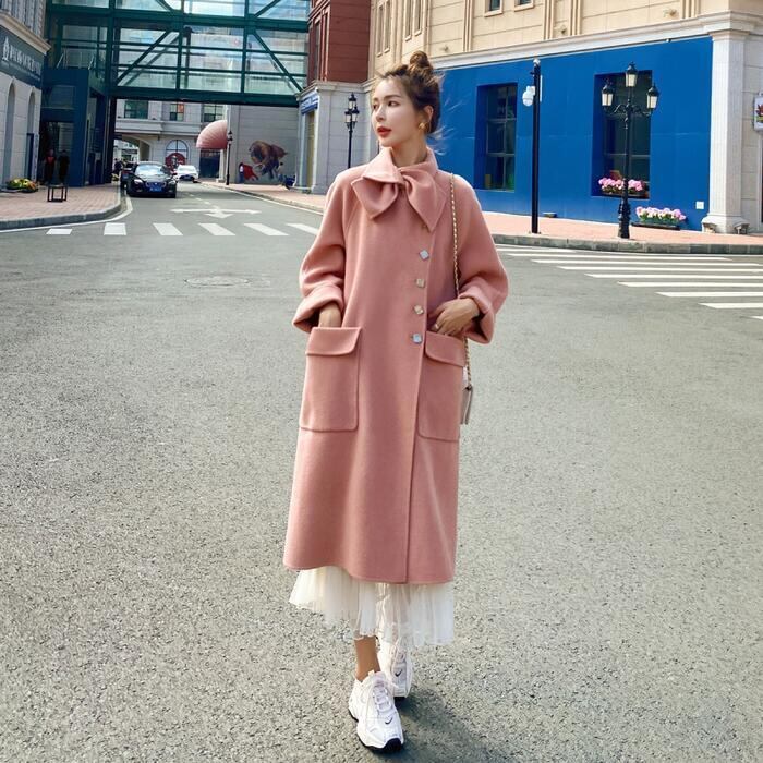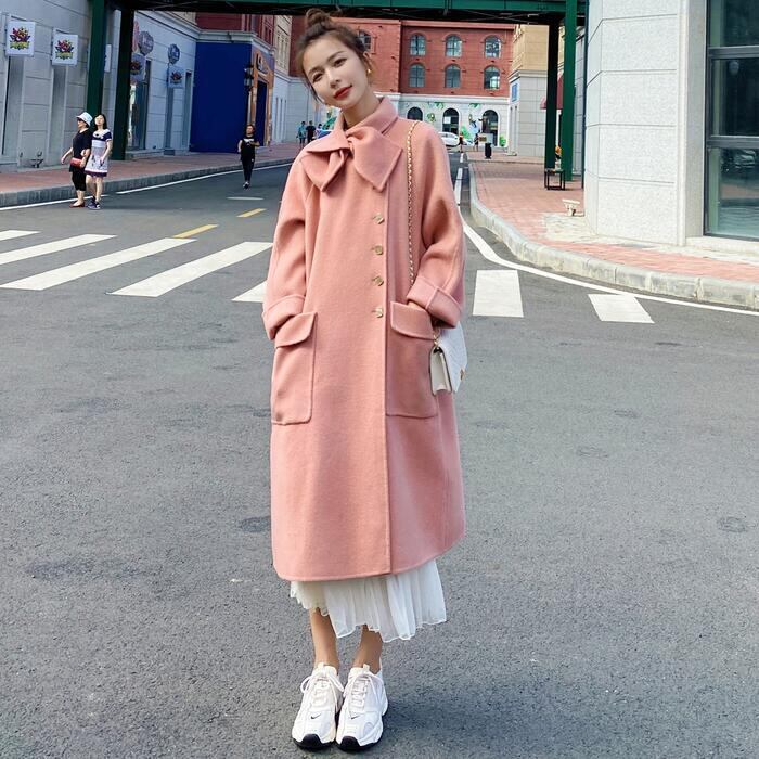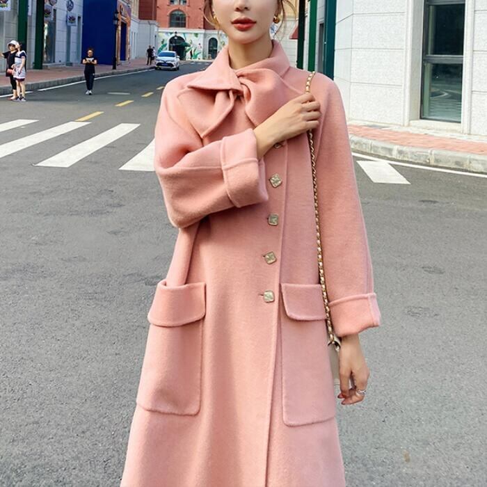 コート アウター ジャケット ボウタイ チェスター レディース エレガント きれいめ カジュアル おしゃれ 大人 可愛い ロング丈 クラシカル 暖かい ゆったり 体型カバー オーバーサイズ 韓国 ピンク 春 秋 冬 20代 30代 40代 50代