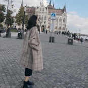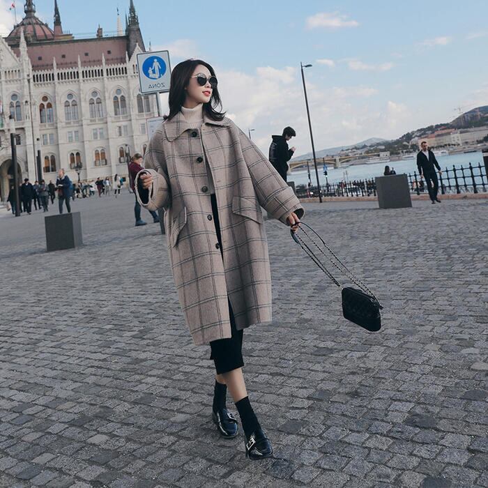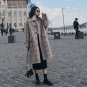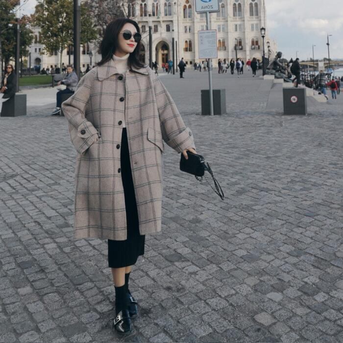 落ち着いた大きめチェックが大人可愛いステンカラーコート。