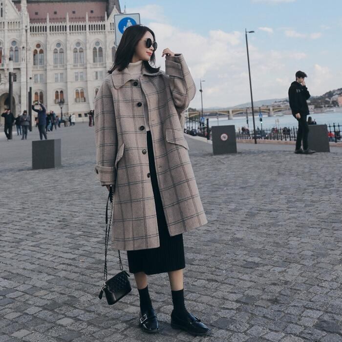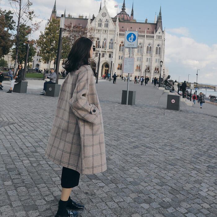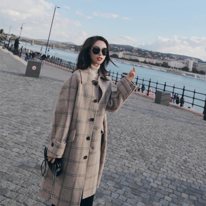 大きいサイズコート アウター ジャケット トラッド ステンカラー チェック チェスター レディース エレガント きれいめ カジュアル おしゃれ 大人 可愛い ミディ丈 クラシカル ゆったり 体型カバー 韓国 ベージュ 春 秋 冬 20代 30代 40代 50代