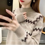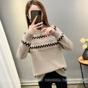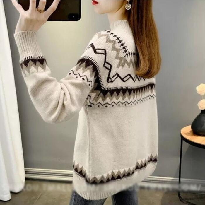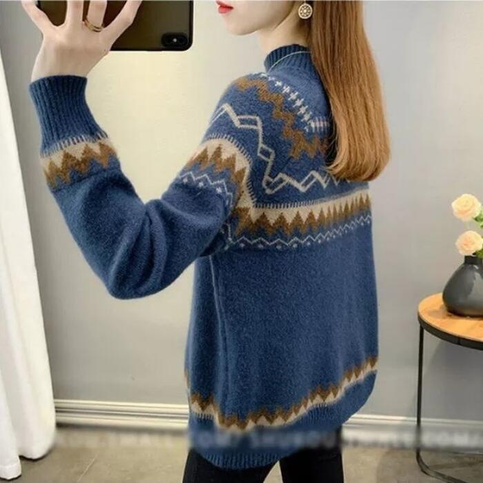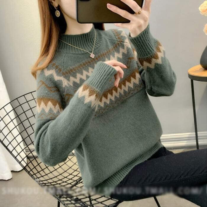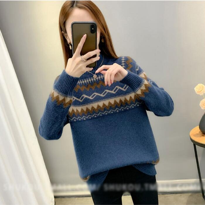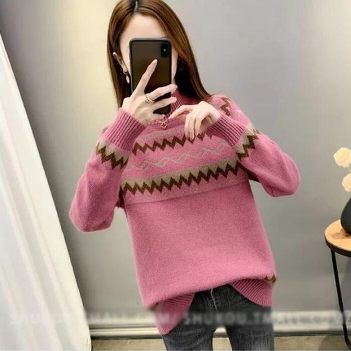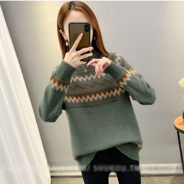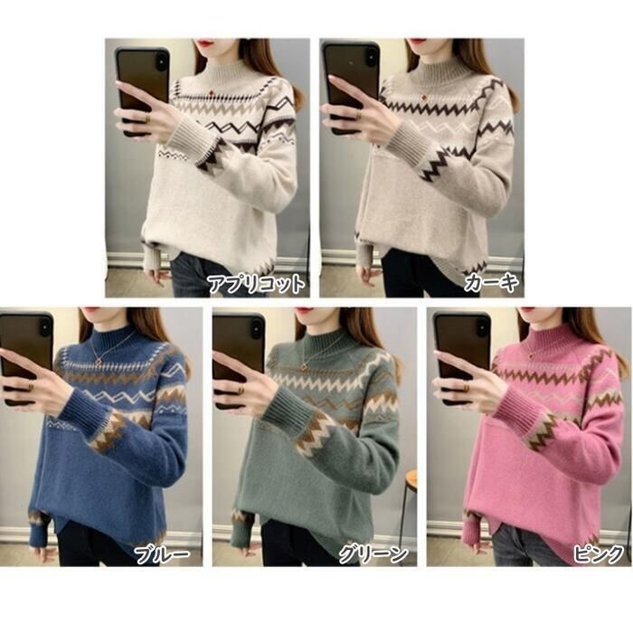 全2種5色 大きいサイズトップス ニット セーター ノルディック レディース きれいめ カジュアル ハイネック おしゃれ 長袖 大人 可愛い フェミニン ナチュラル 裏起毛 ベージュ ピンク ブルー ブラウン グリーン 緑 春 秋 冬 20代 30代 40代 50代