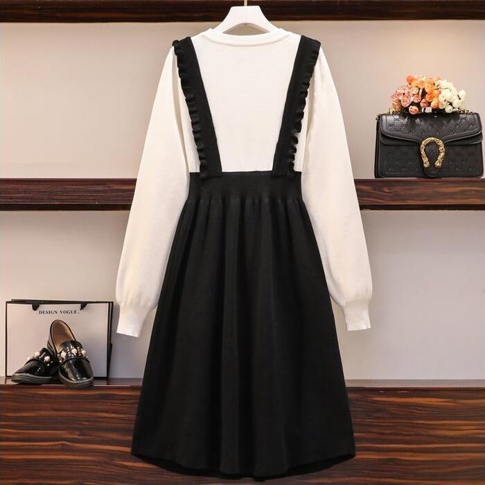 サッと1枚着るだけでオシャレなレイヤード風ニットワンピース。