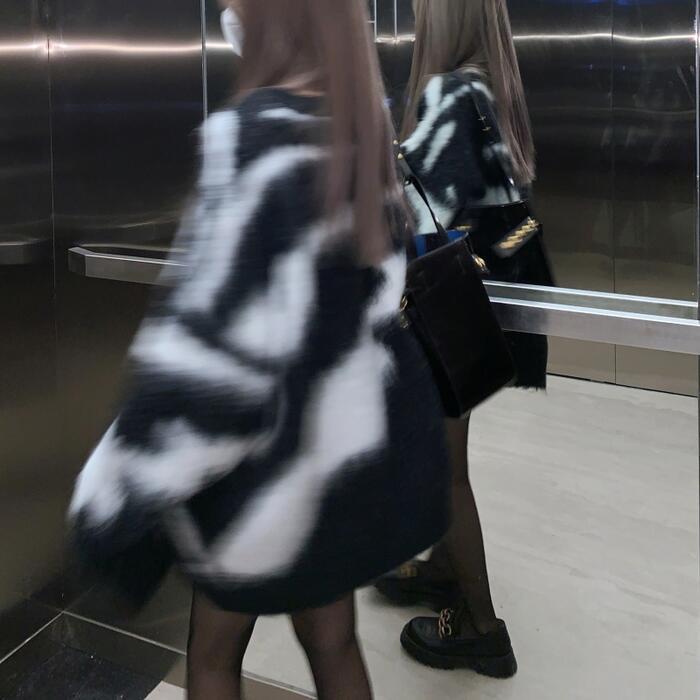 コーデのポイントになるゼブラ柄ニットトップス。
