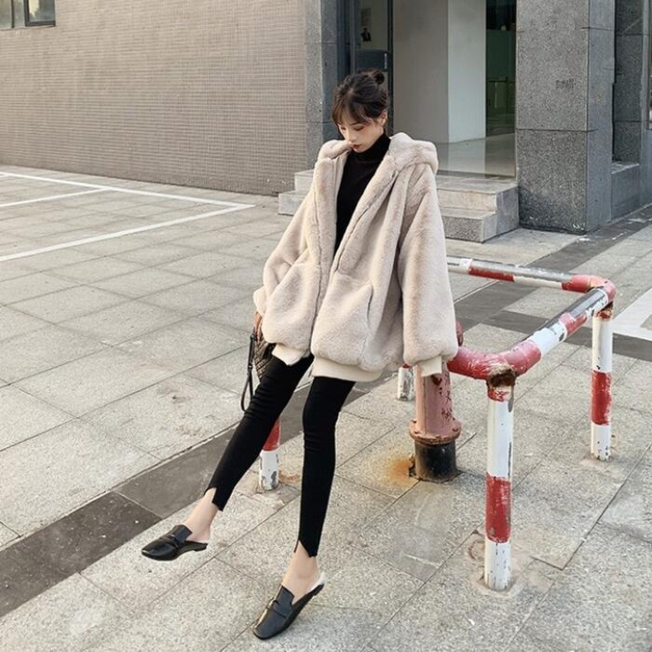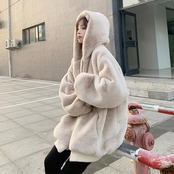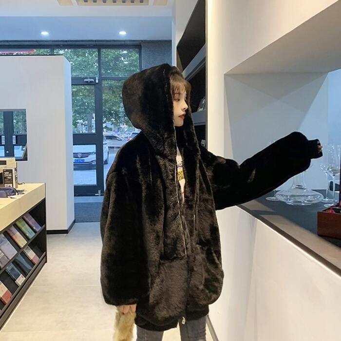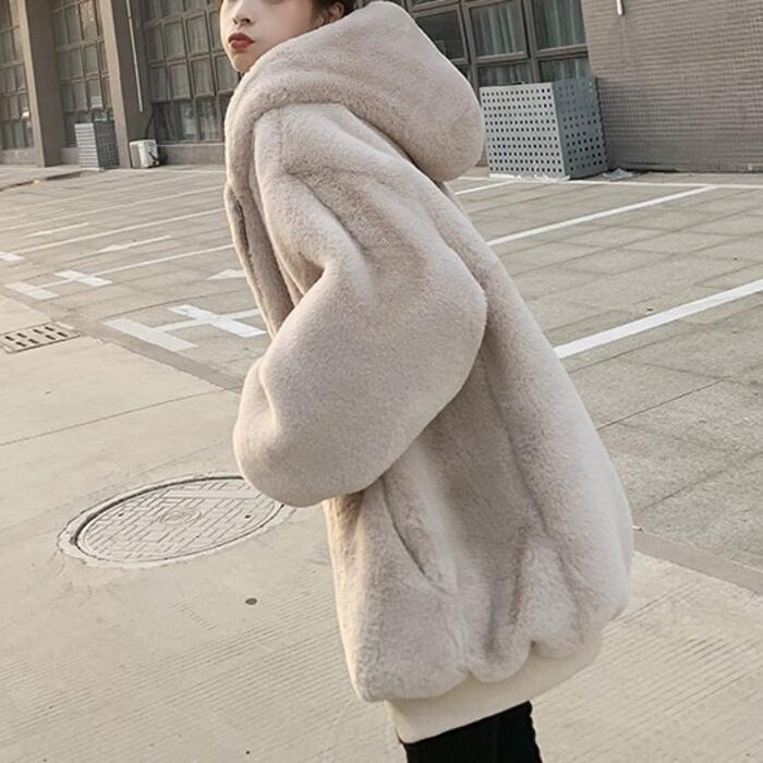 全2色 大きいサイズコート アウター ジャケット ファー フード パーカー フーディー レディース きれいめ カジュアル おしゃれ 大人 可愛い オーバーサイズ ゆったり 体型カバー 暖かい ベージュ ブラック 黒 春 秋 冬 20代 30代 40代 50代