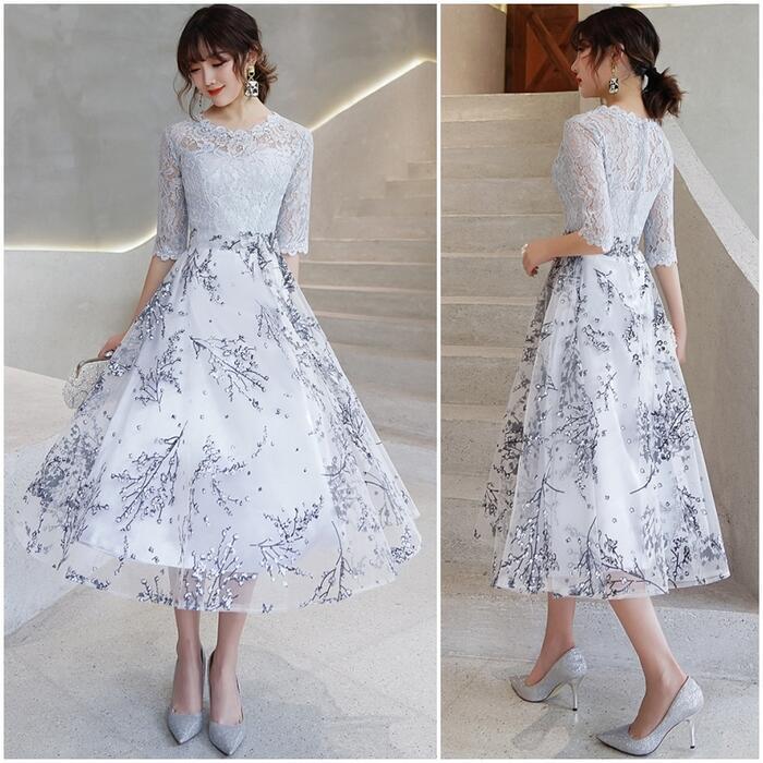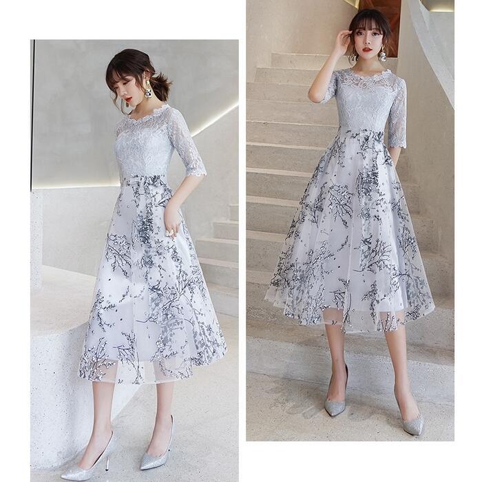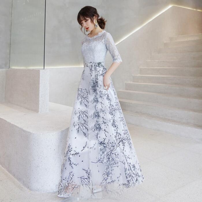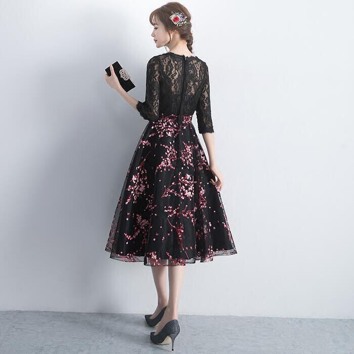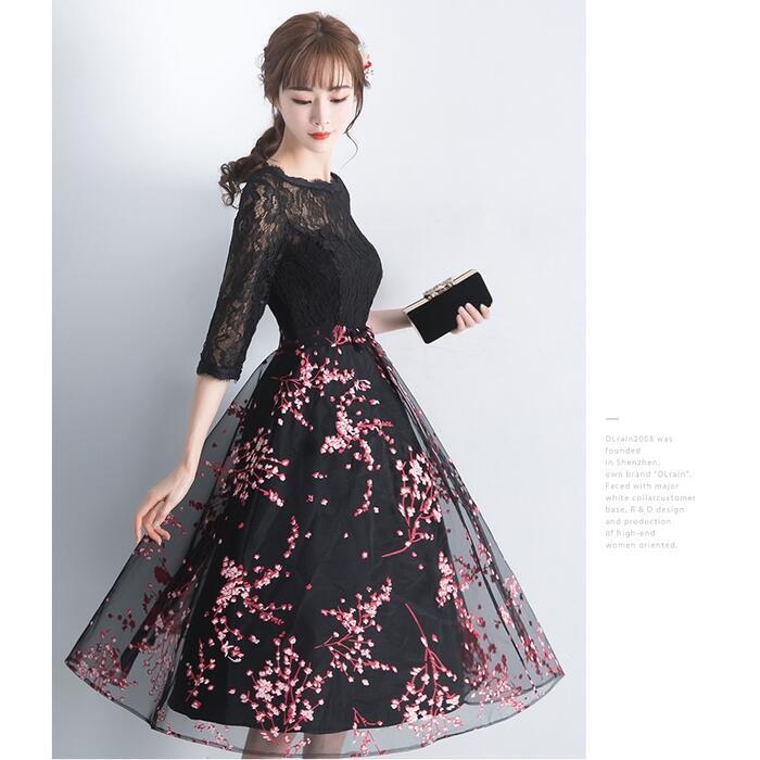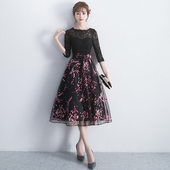 全2種3色 大きいサイズ セレモニー 二次会パーティー ドレス ワンピース 結婚式 レース 袖あり ワンピ ドレス レディース エレガント きれいめ 花柄 ミモレ丈 マキシ丈 七分袖 おしゃれ 大人 可愛い フェミニン お呼ばれ レッド グレー ブラック 黒 春 秋 冬 20代 30代 40代 50代