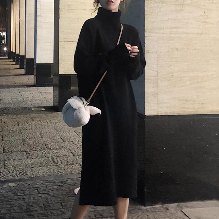 1枚で着こなしが決まる、旬のタートルネックニットワンピース。