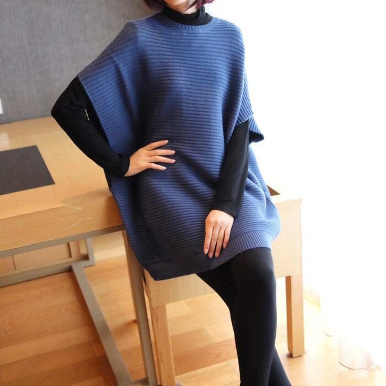 ゆったりシルエットのドルマンスリーブニット。