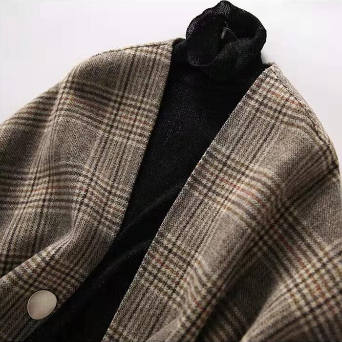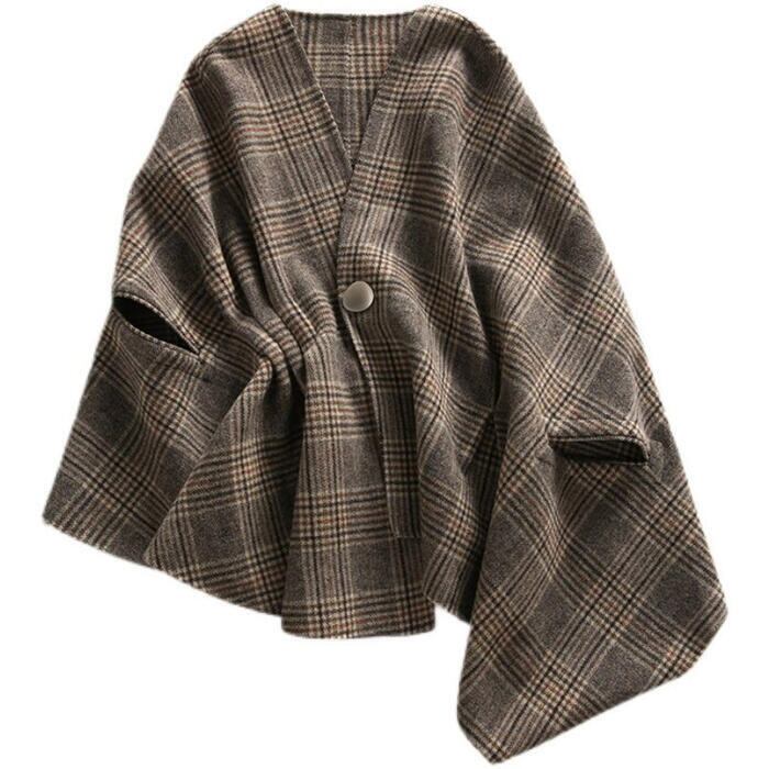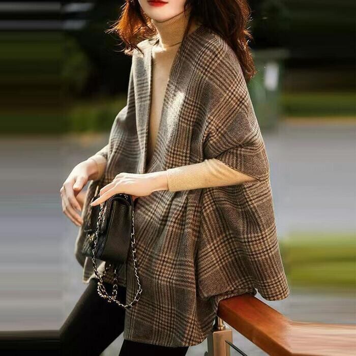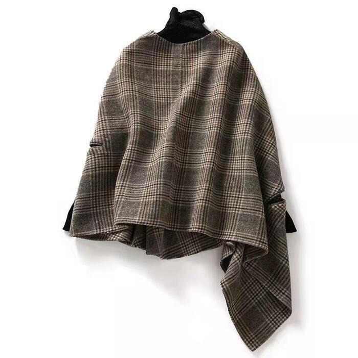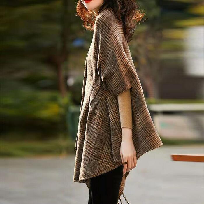 トラッド アウター ケープ ジャケット カーディガン ポンチョ レディース エレガント きれいめ カジュアル 大人 可愛い フェミニン 羽織り チェック 体型カバー ブラウン 春 秋 冬 20代 30代 40代 50代