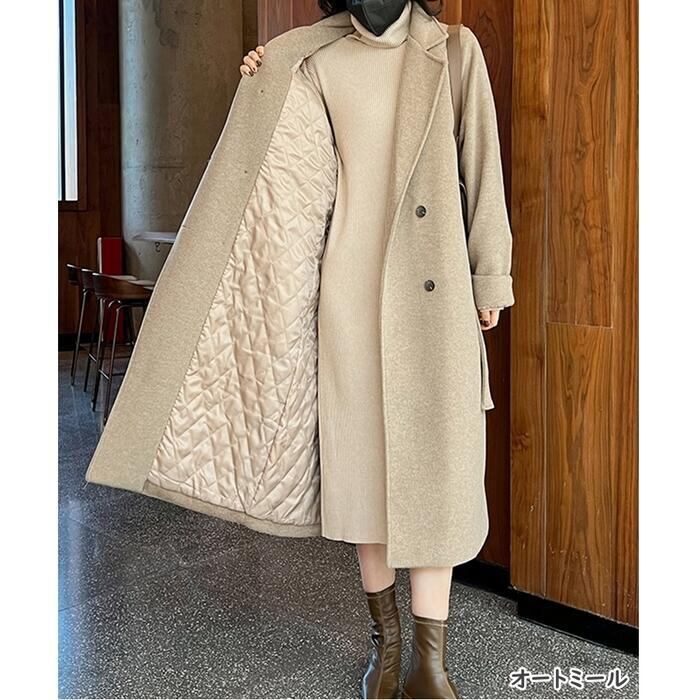 全3色 大きいサイズコート アウター ジャケット チェスター レディース エレガント きれいめ カジュアル おしゃれ 大人 可愛い ロング丈 ゆったり 体型カバー シンプル ベーシック 中綿 ベージュ グレー 春 秋 冬 20代 30代 40代 50代