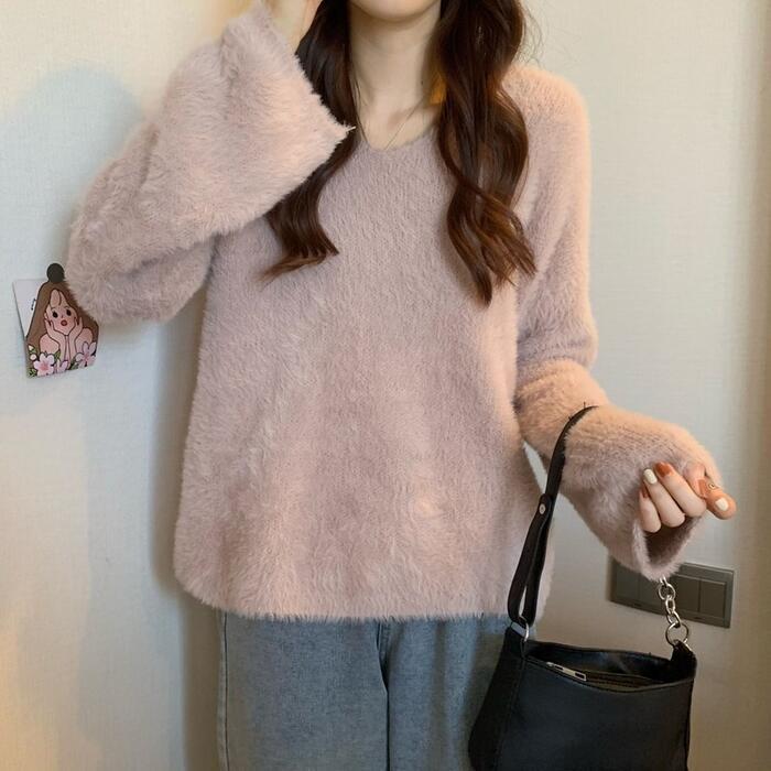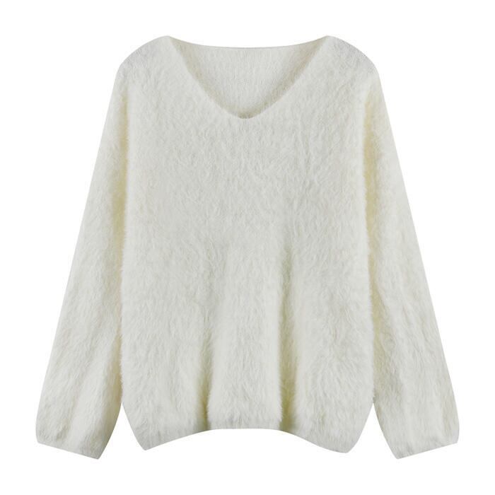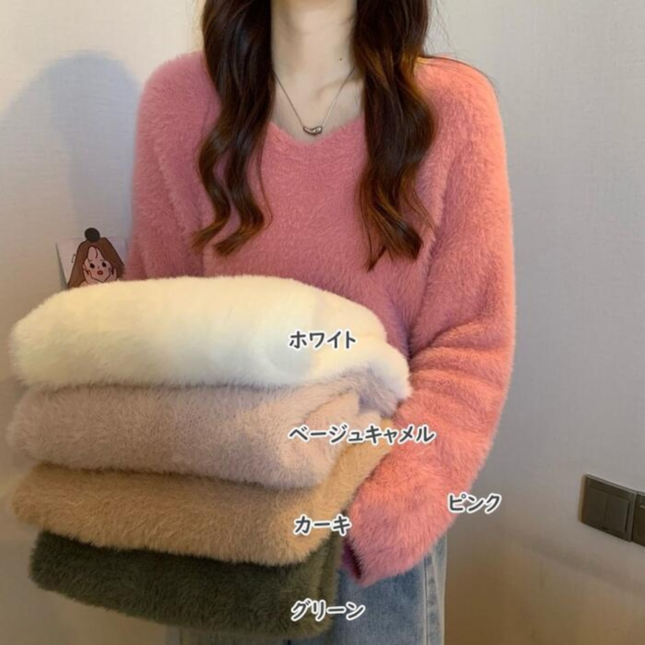 全5色 トップス ニット セーター シャギー レディース きれいめ カジュアル おしゃれ 長袖 大人 可愛い フェミニン Vネック ナチュラル ゆったり 体型カバー シンプル グリーン 緑 ピンク ホワイト 白 ベージュ 春 秋 冬 20代 30代 40代 50代