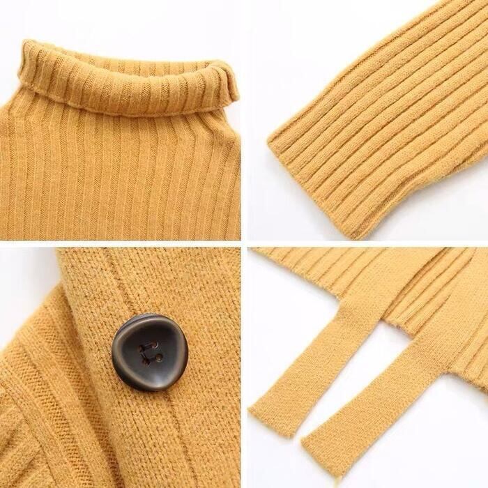 全4色 トップス ニット セーター リブ ハイネック レディース きれいめ カジュアル おしゃれ 長袖 大人 可愛い フェミニン タートルネック ナチュラル ゆったり スリット ブラウン イエロー パープル ホワイト 白 春 秋 冬 20代 30代 40代 50代