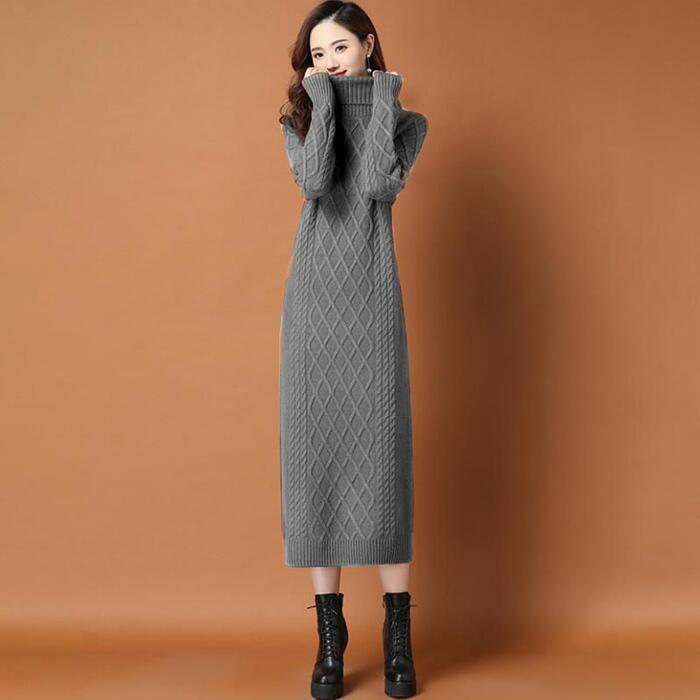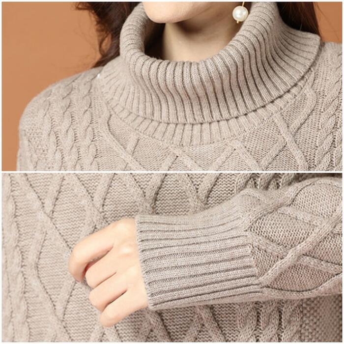 首周りを暖かく包み込むタートルニットワンピース。
