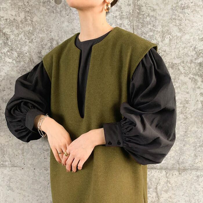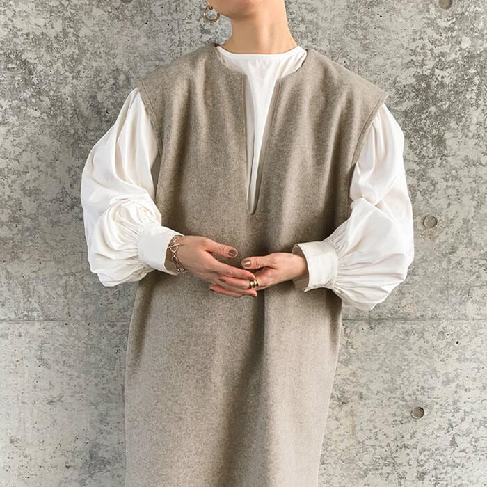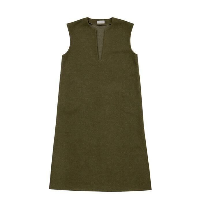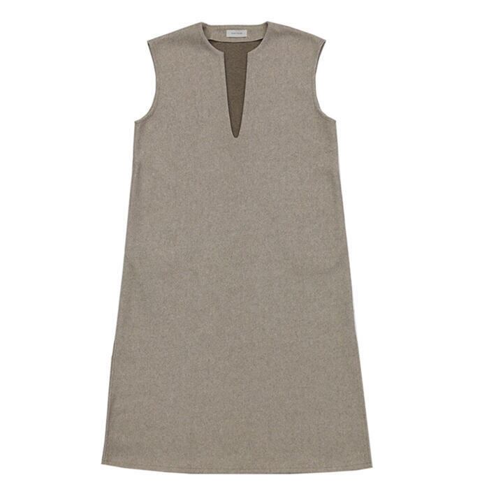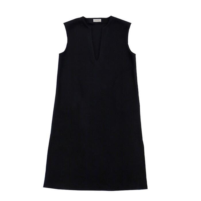 キーネックがポイントのノースリーブワンピース。