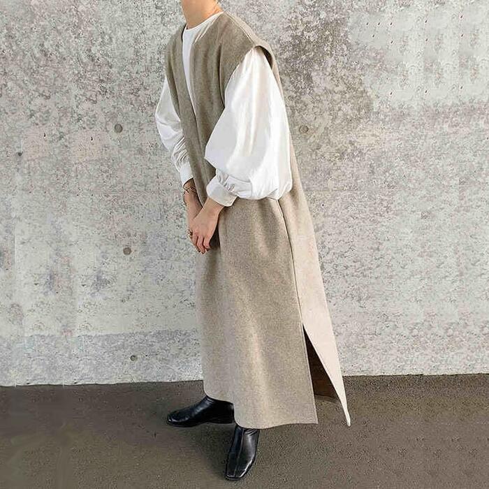 インナーにカジュアルなTシャツや、きれいめシャツ、ブラウスを合わせて、