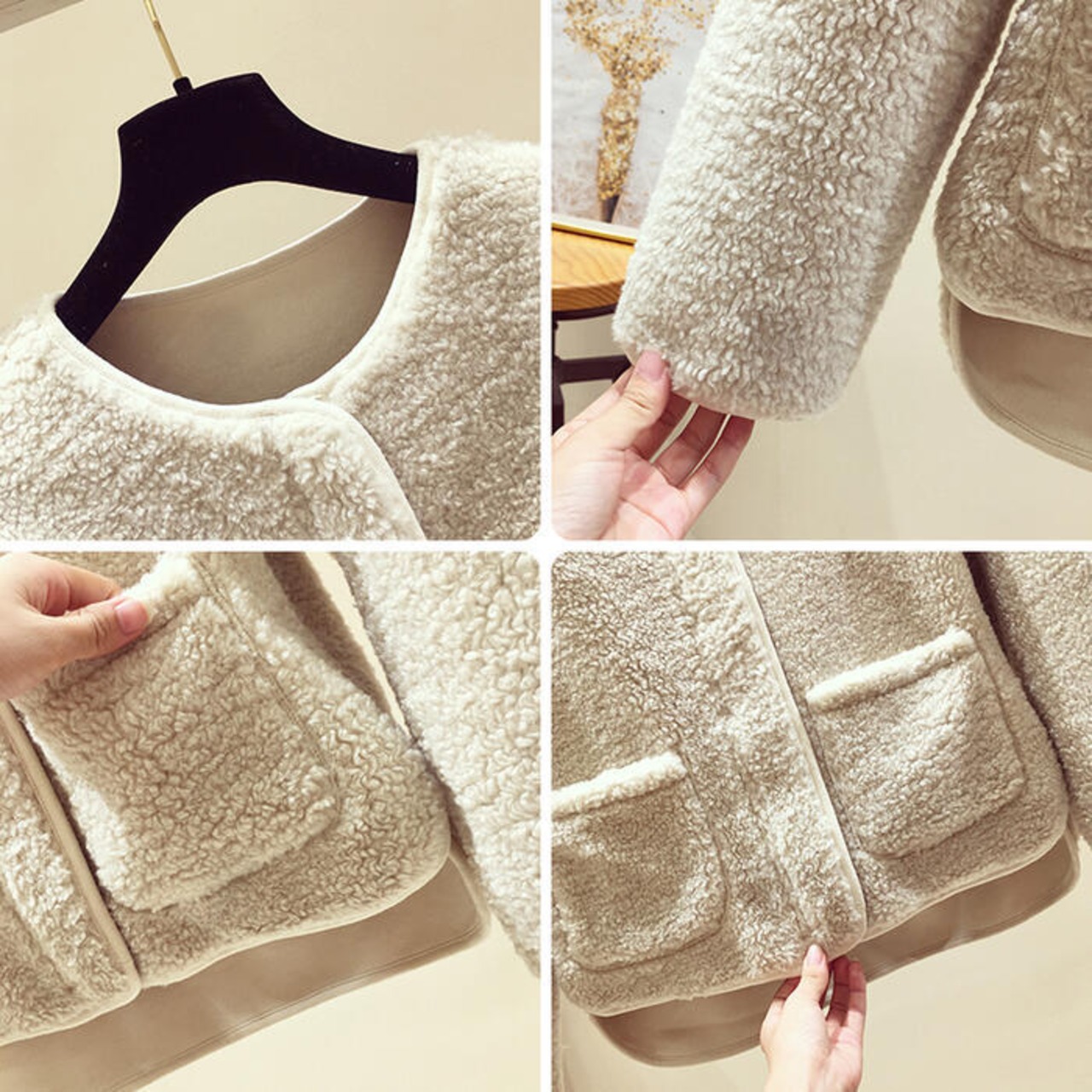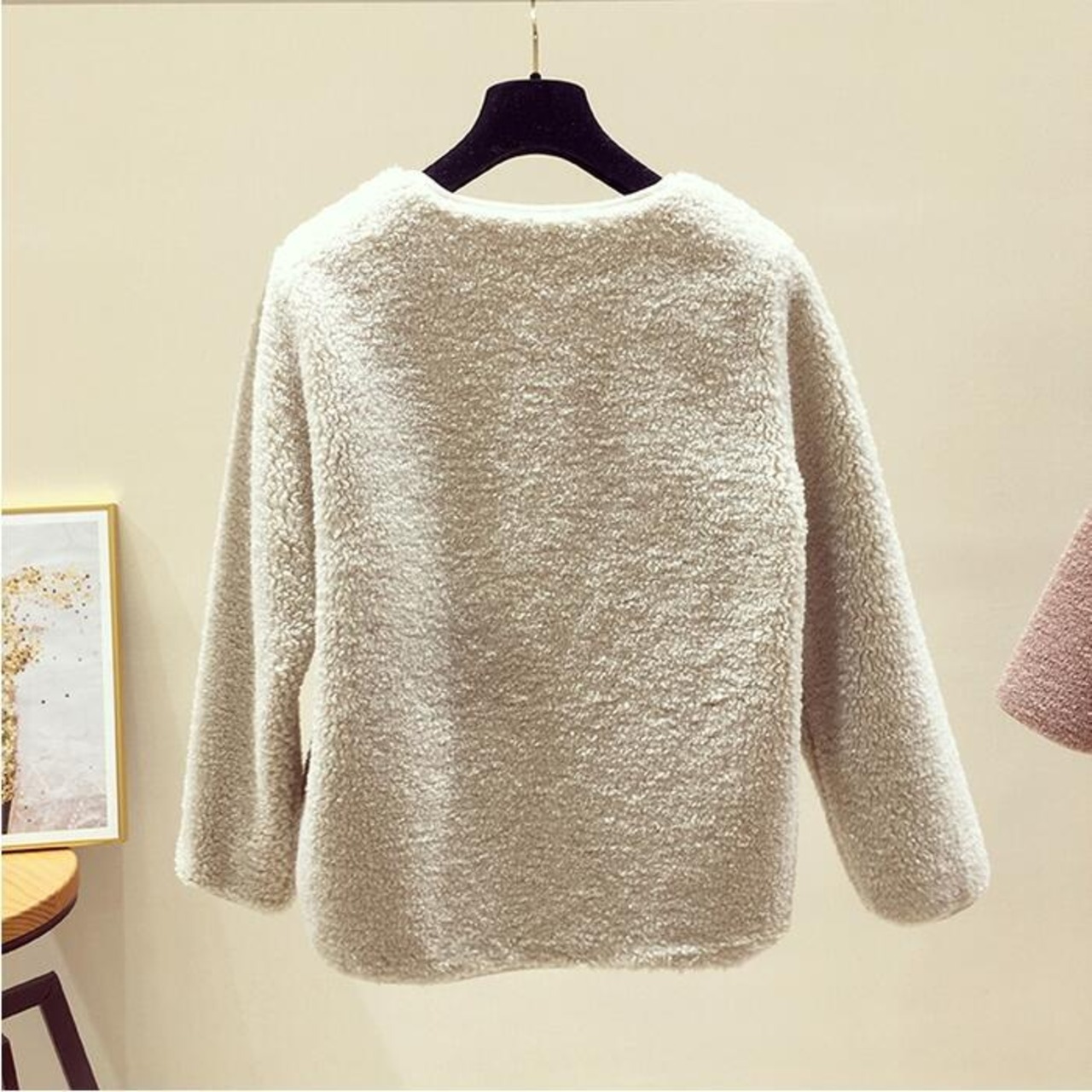 全3色 アウター コート ボア ジャケット ノーカラー レディース きれいめ カジュアル おしゃれ 大人 可愛い フェミニン ゆったり 体型カバー シンプル 暖かい ナチュラル ピンク ホワイト 白 ブラウン 春 秋 冬 20代 30代 40代 50代