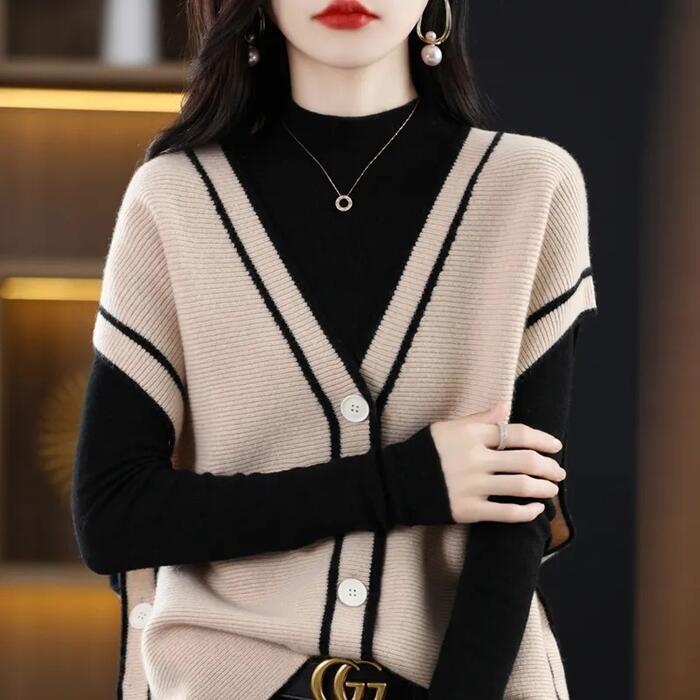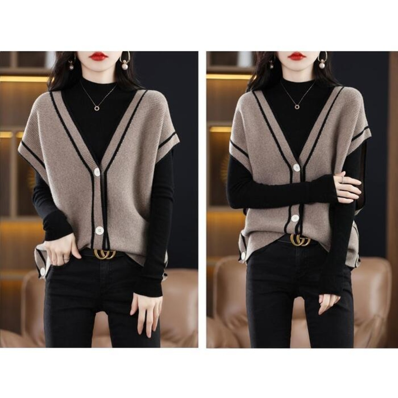 ハイネックニットとベストの2点セット。