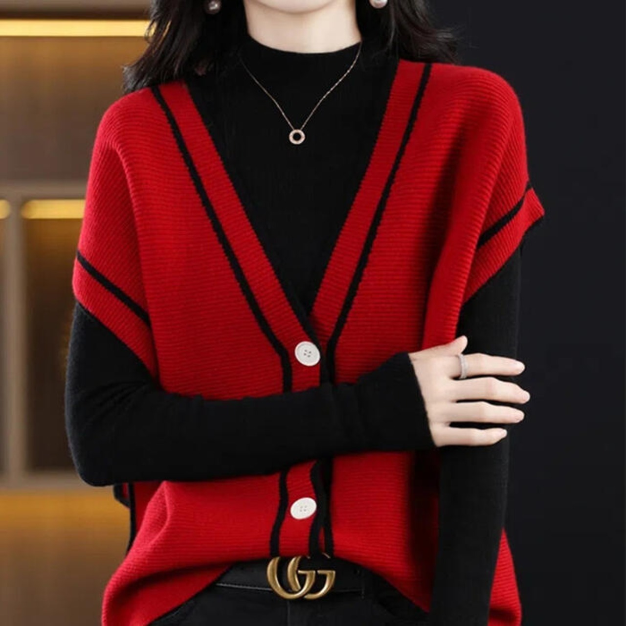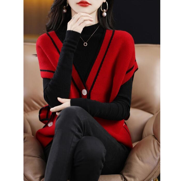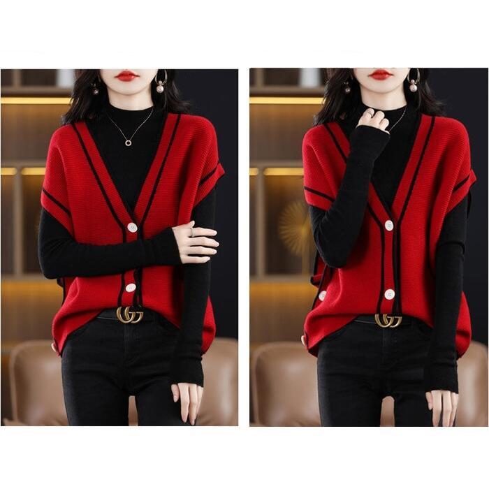 全4色 大きいサイズセットアップ トップス ニット 2点セットタートルネック ベスト カーディガン レディース きれいめ カジュアル おしゃれ 長袖 大人 可愛い フェミニン Vネック ゆったり 体型カバー 韓国 ベージュ レッド 赤 ブラック 黒 春 秋 冬 20代 30代 40代 50代