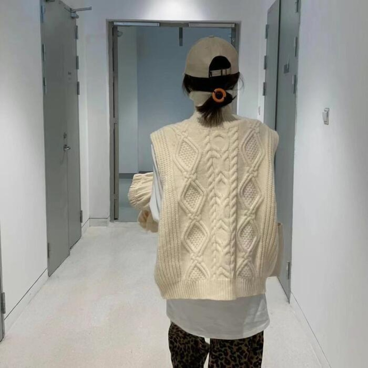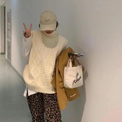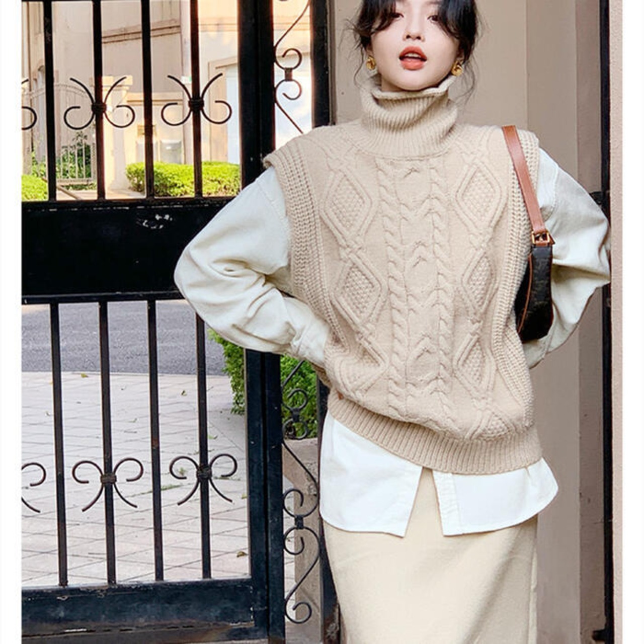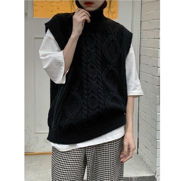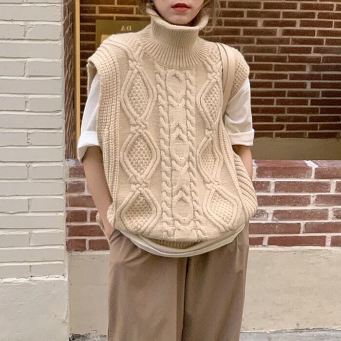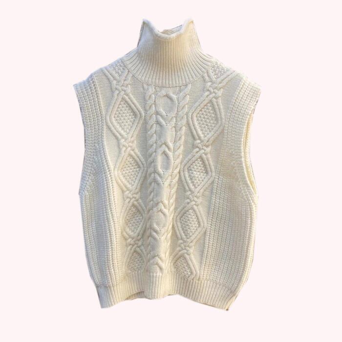 ケーブル編みが可愛いハイネックニットベスト。