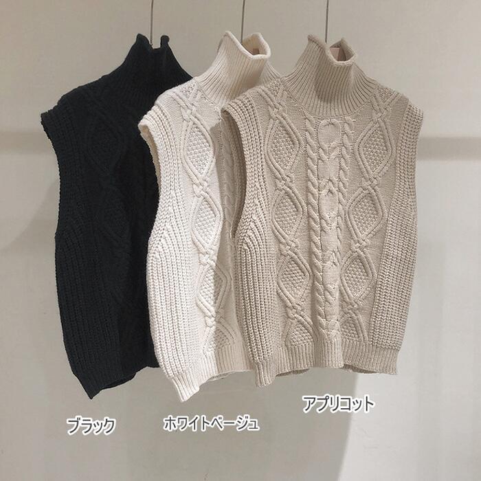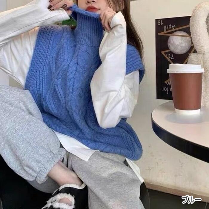 全6色 レイヤード トップス ニット セーター ケーブル ベスト レディース きれいめ カジュアル おしゃれ ノースリーブ 大人 可愛い タートルネック シンプル パープル ブルー 青 ベージュ ホワイト 白 グレー ブラック 黒 春 秋 冬 20代 30代 40代 50代