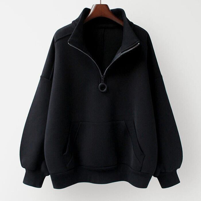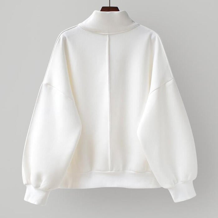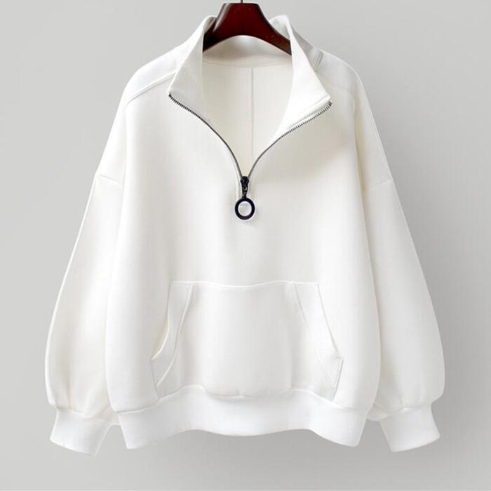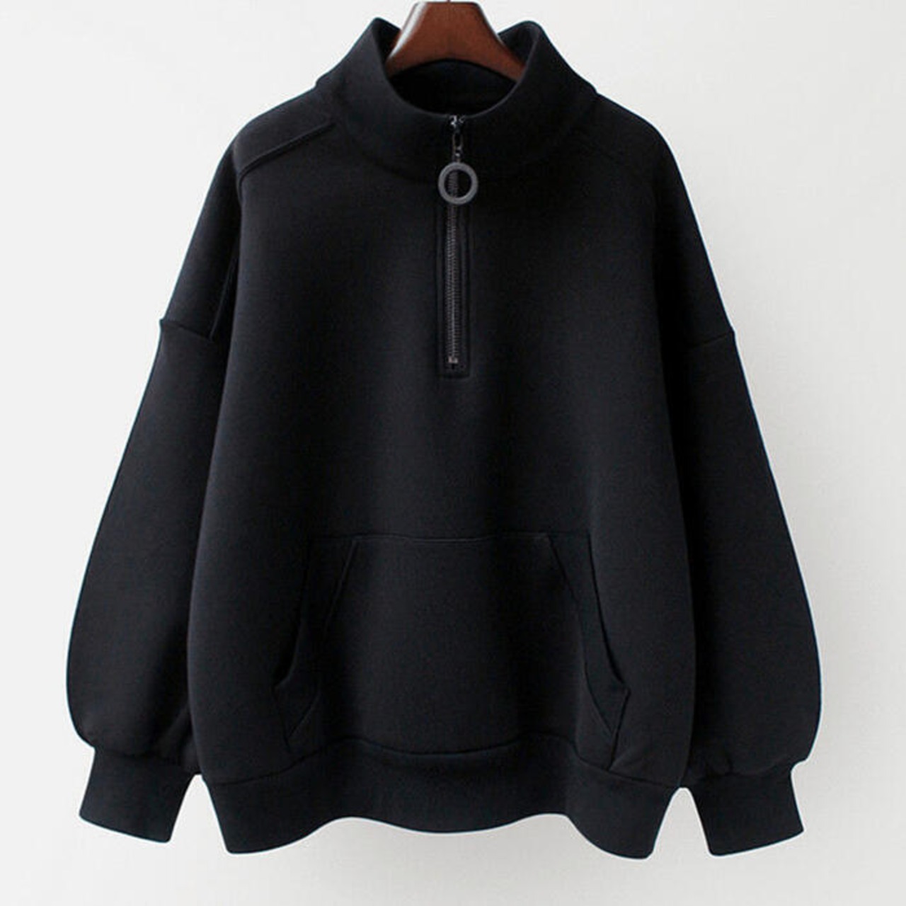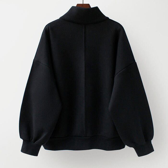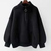 全2色 大きいサイズトップス プルオーバー スウェット ハーフジップ ハイネック レディース きれいめ カジュアル おしゃれ 長袖 大人 可愛い シンプル スポーティ かっこいい 楽ちん 体型カバー ホワイト 白 ブラック 黒 春 秋 冬 20代 30代 40代 50代