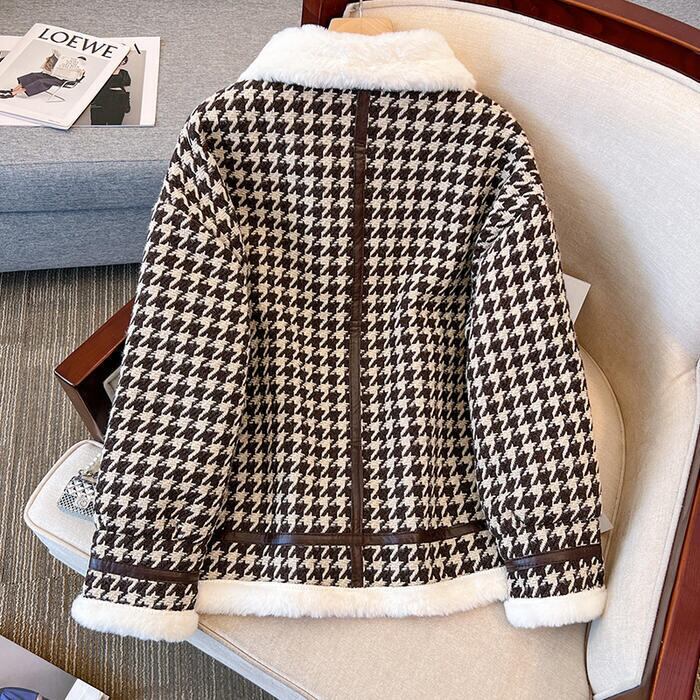 アウター ジャケット コート ボア ファー 千鳥格子 ブルゾン レディース きれいめ カジュアル 裏起毛 ショート丈 おしゃれ 長袖 大人 可愛い かっこいい 暖かい 大きいサイズ ブラウン 春 秋 冬 20代 30代 40代 50代