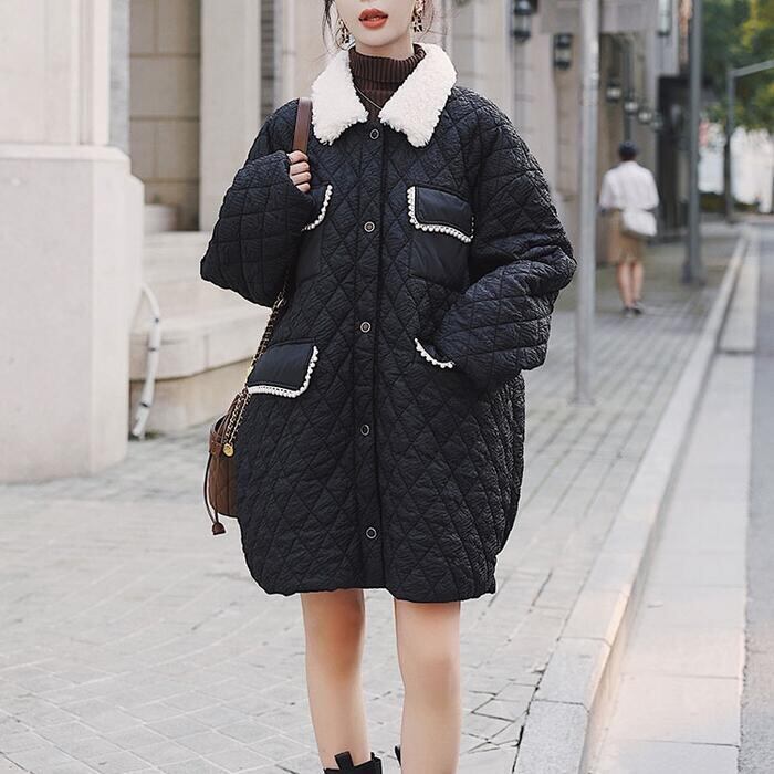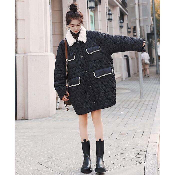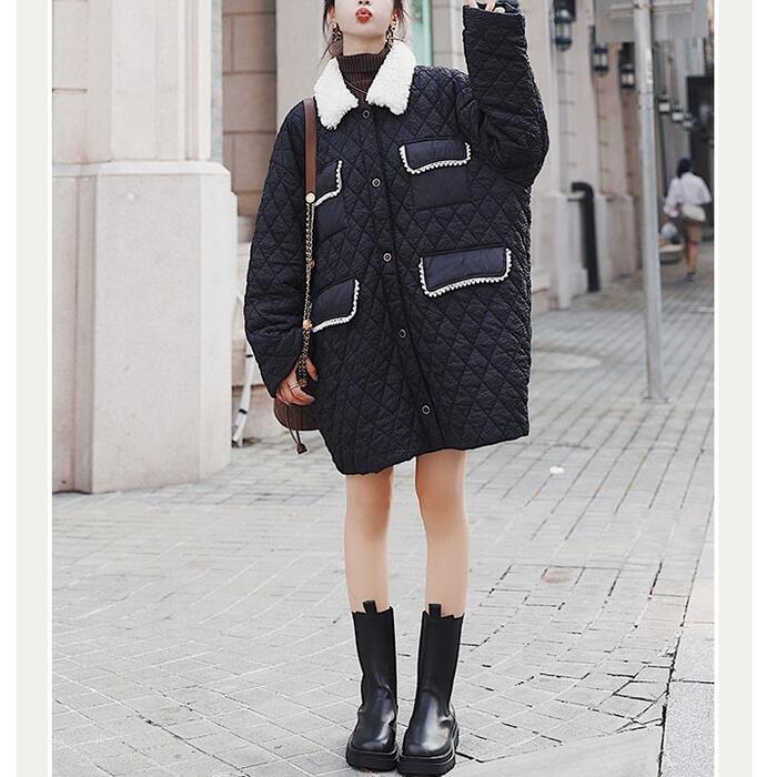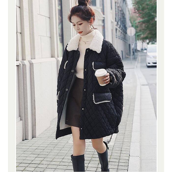 アウター ジャケット コート キルティング ダウン ボア レディース きれいめ カジュアル ミディアム丈 おしゃれ 長袖 大人 可愛い ゆったり 体型カバー フェミニン 暖かい 大きいサイズ ブラック 黒 春 秋 冬 20代 30代 40代 50代