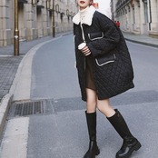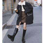 ゆったりシルエットのキルティングボアコート。