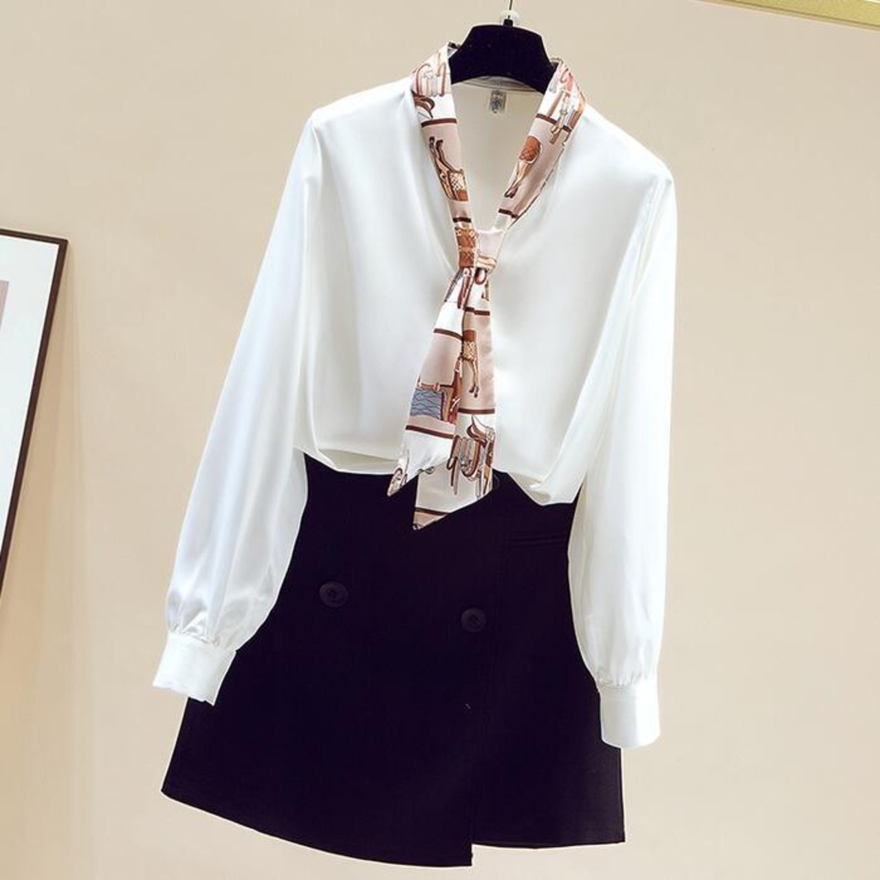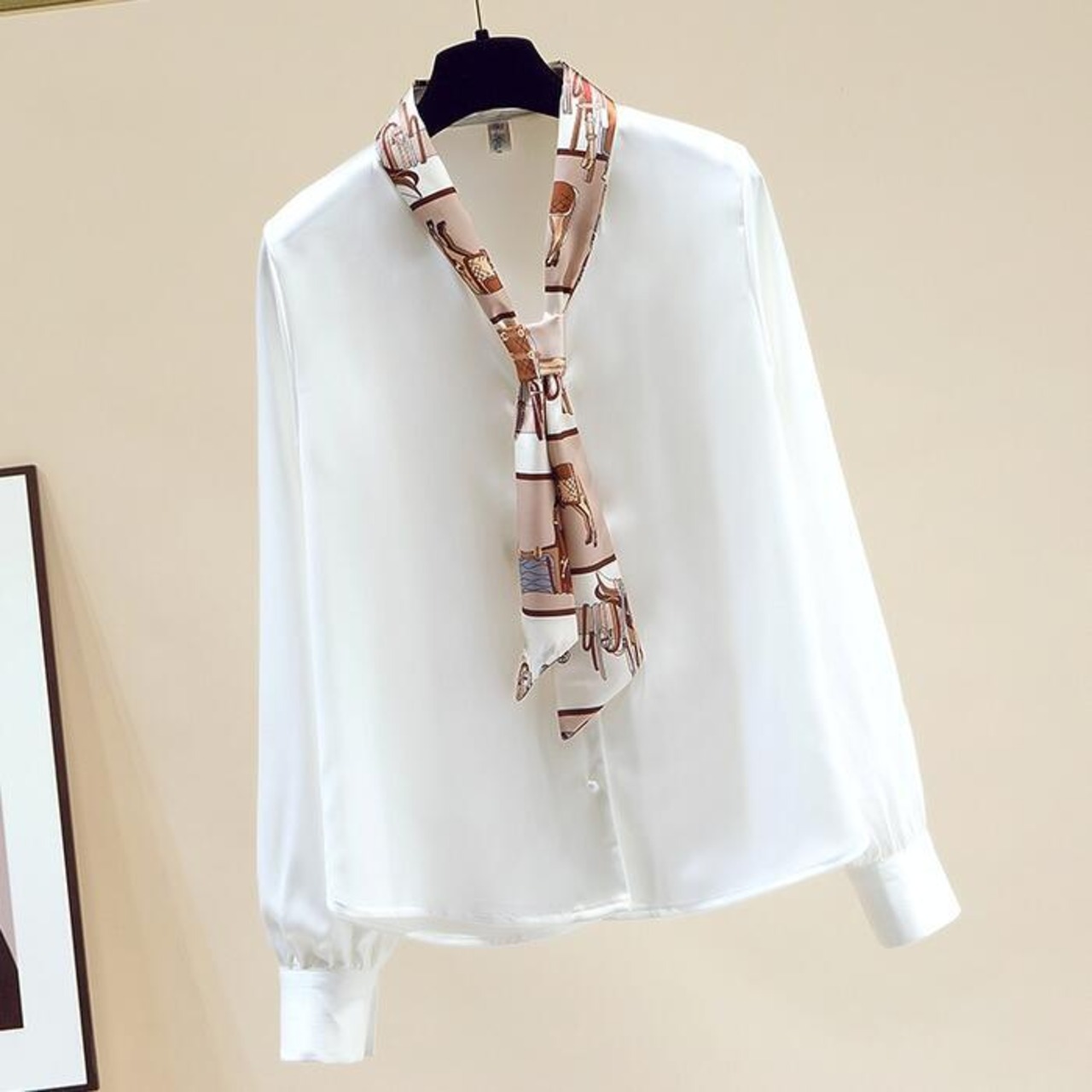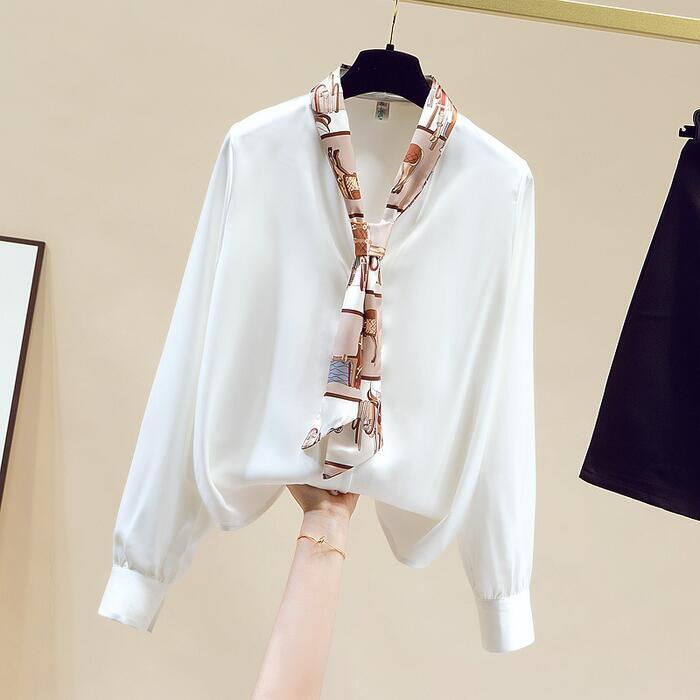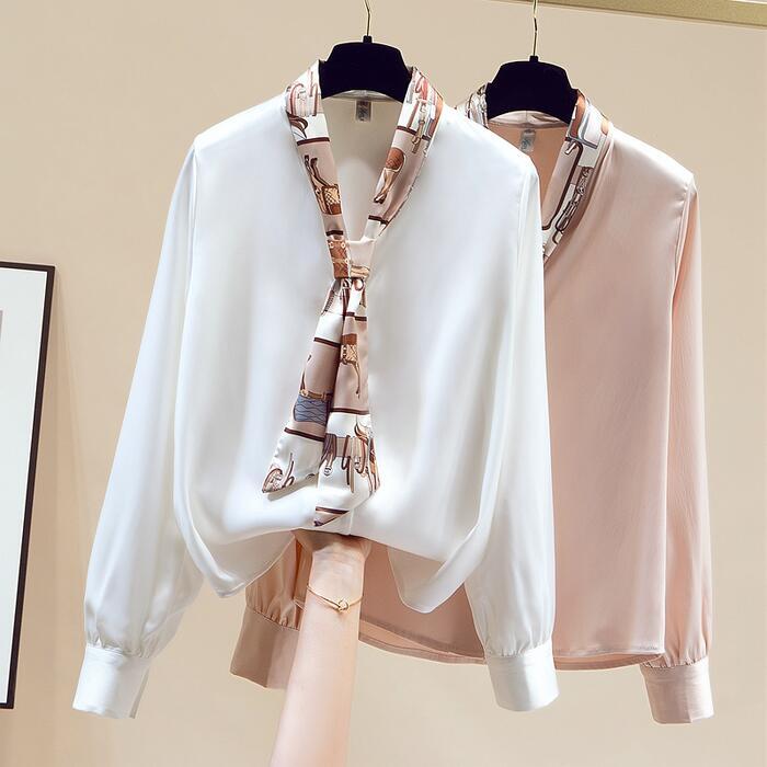 全2色 大きいサイズトップス ブラウス シャツ ボウタイ スカーフ レディース エレガント きれいめ カジュアル おしゃれ 長袖 大人 可愛い 体型カバー 上品 リボン フェミニン オフィス 大きいサイズ ベージュ ホワイト 白 春 秋 冬 20代 30代 40代 50代
