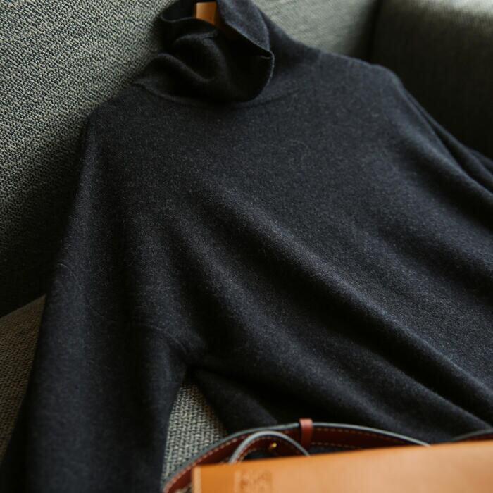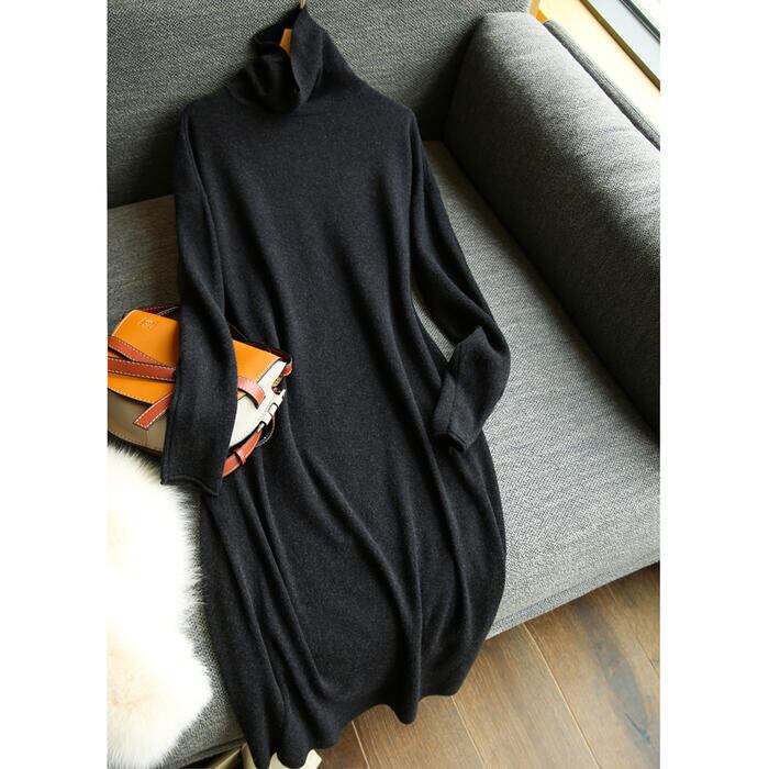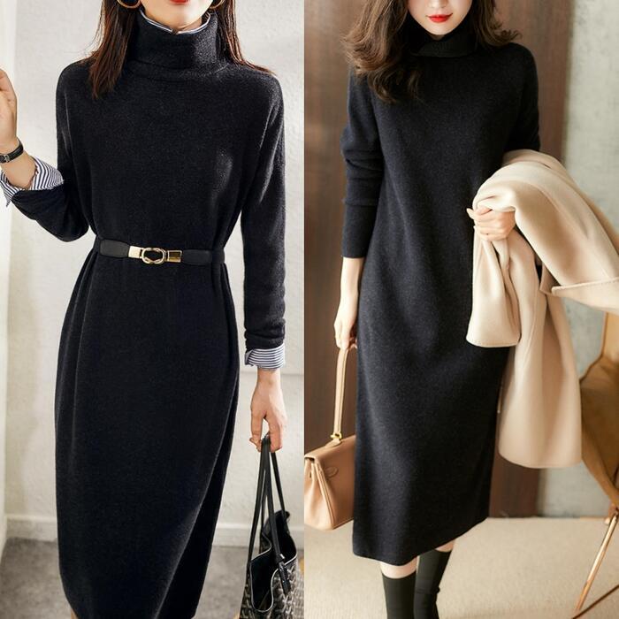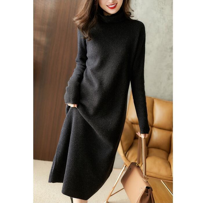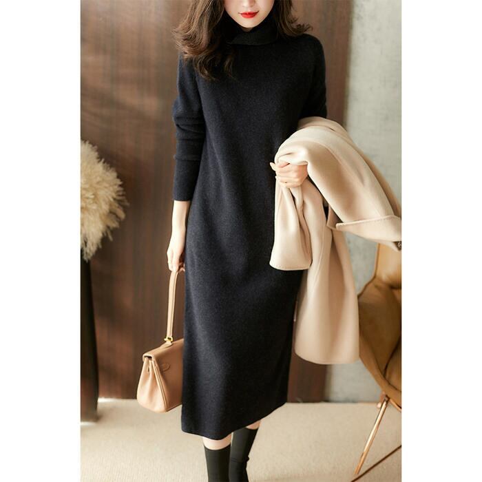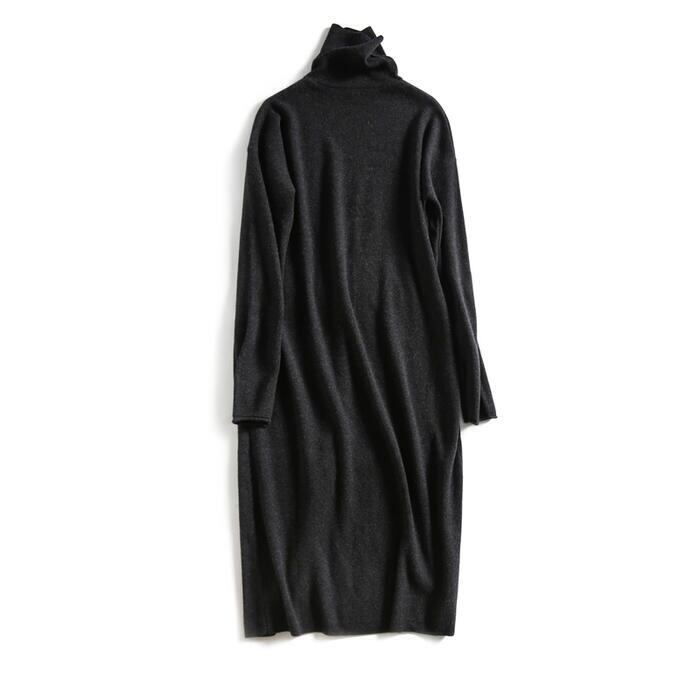 すとんと落ちる美シルエットのタートルニットワンピース。