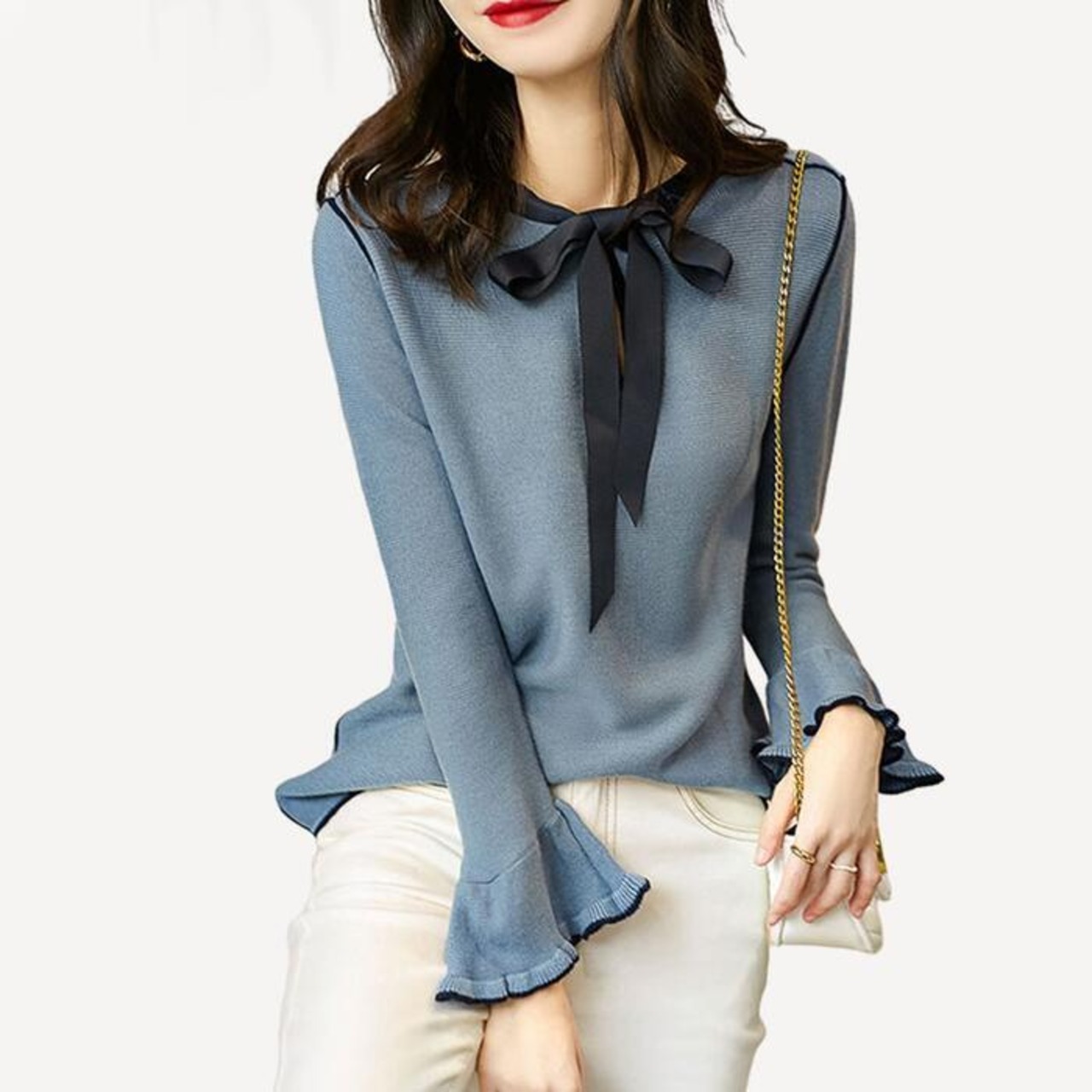 袖口のフレアデザインが大人可愛い印象に。