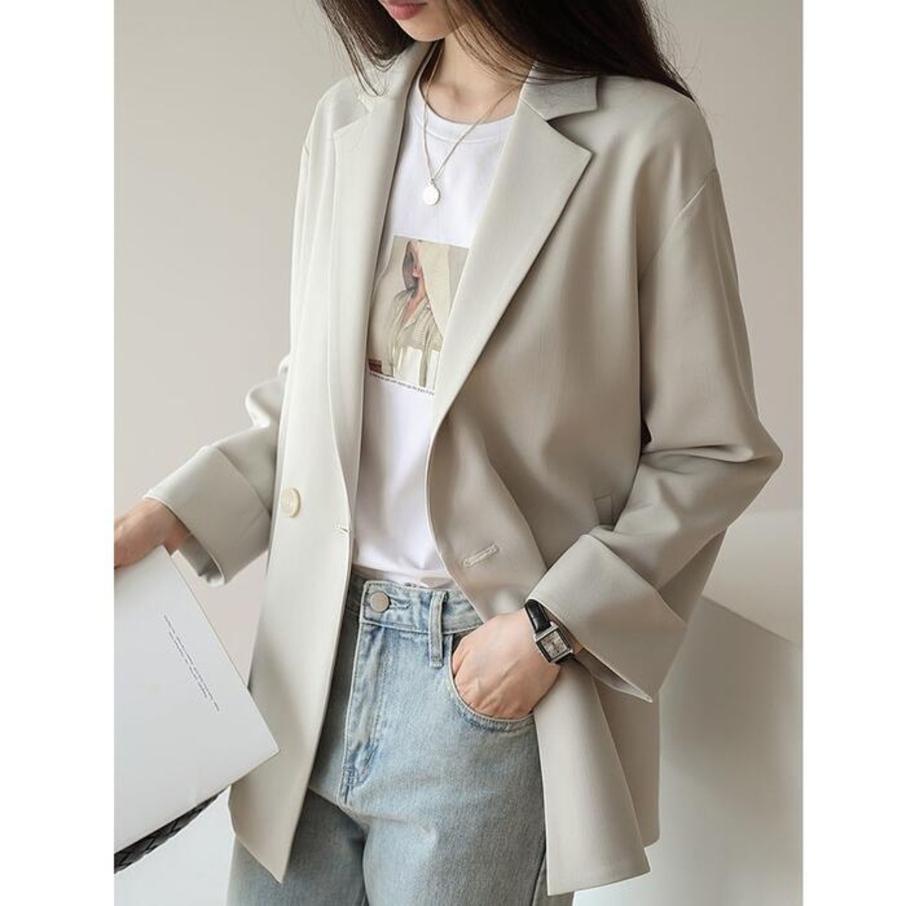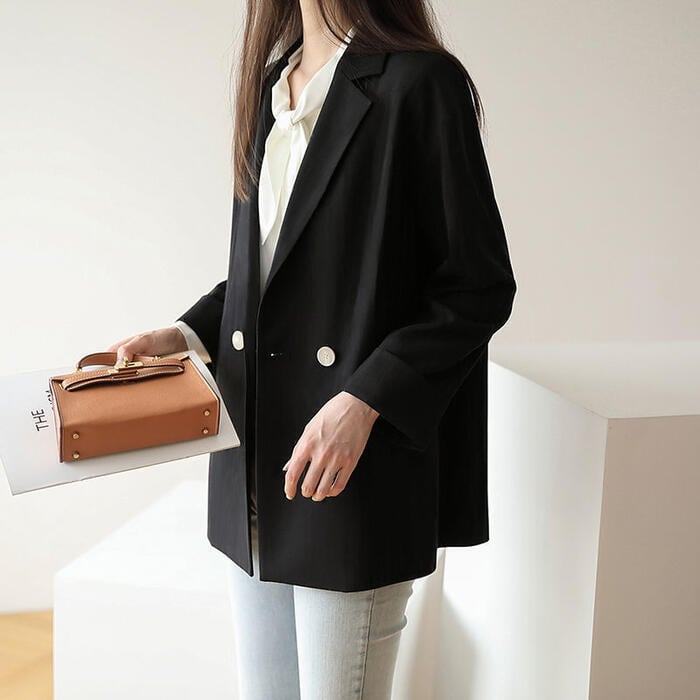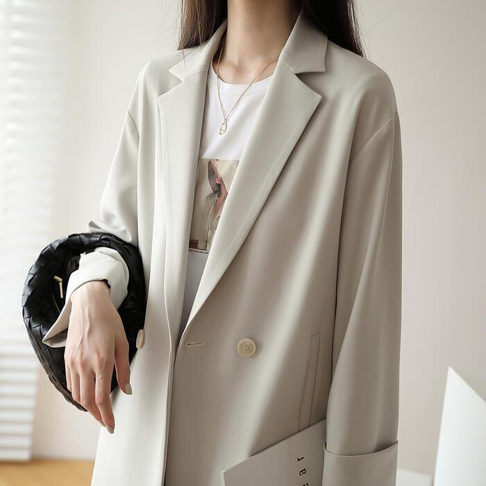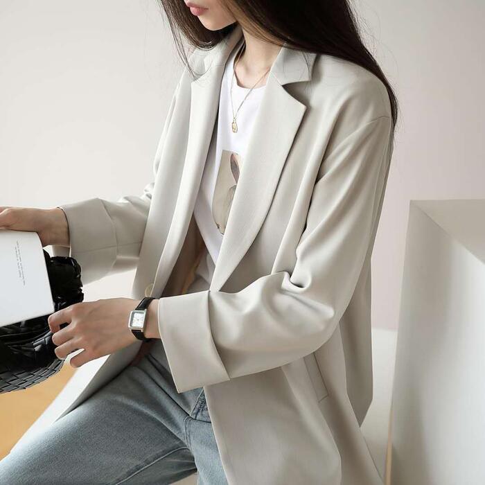全2色 大きいサイズトラッド アウター ジャケット コート テーラードジャケット レディース きれいめ カジュアル おしゃれ 長袖 大人 可愛い ゆったり オーバーサイズ シンプル ベーシック 体型カバー ホワイト 白 ブラック 黒 春 秋 冬 20代 30代 40代 50代