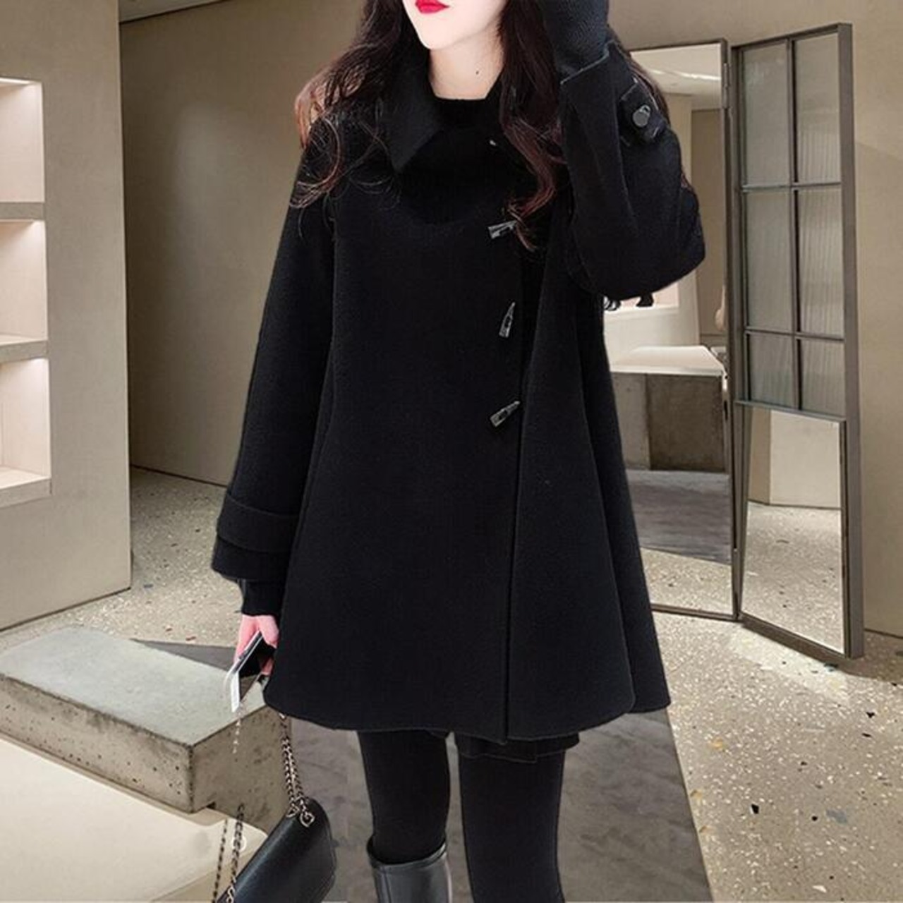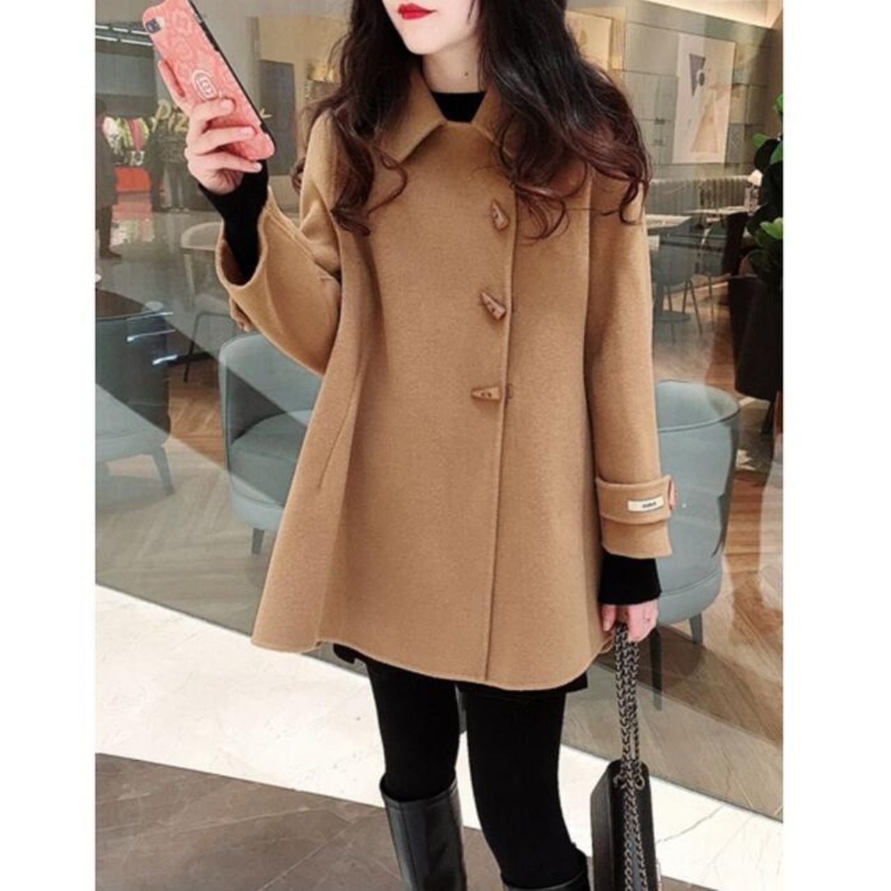 フレアデザインが可愛いミディコート。