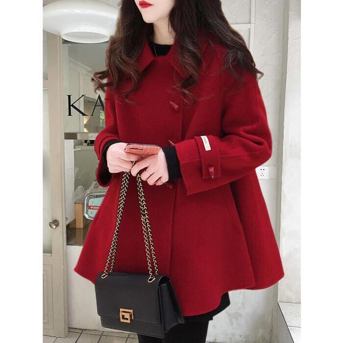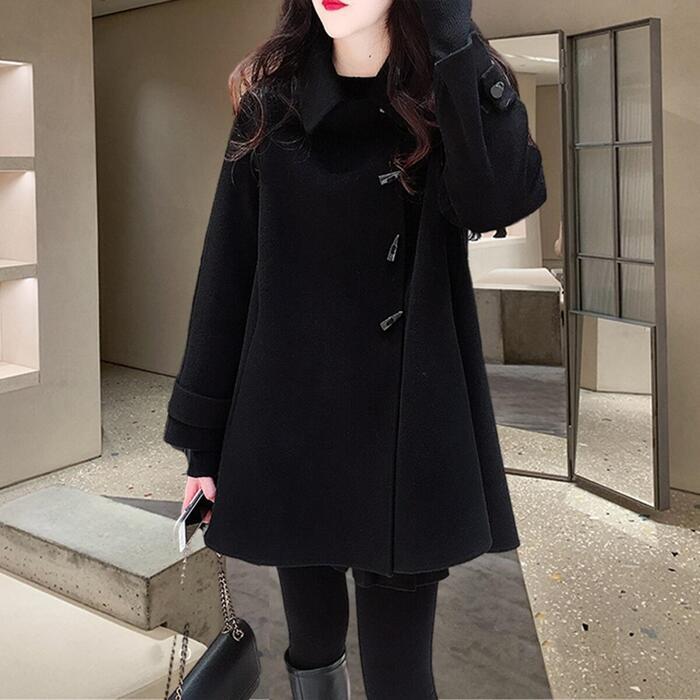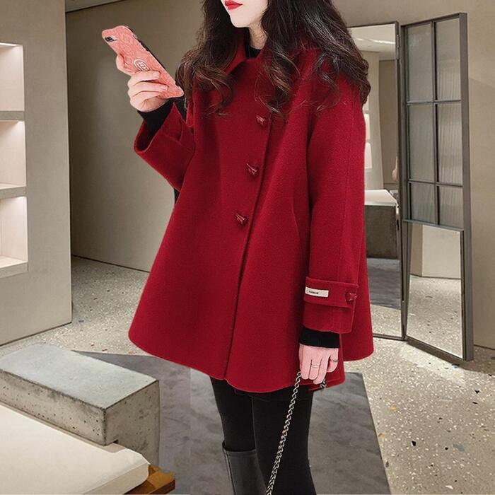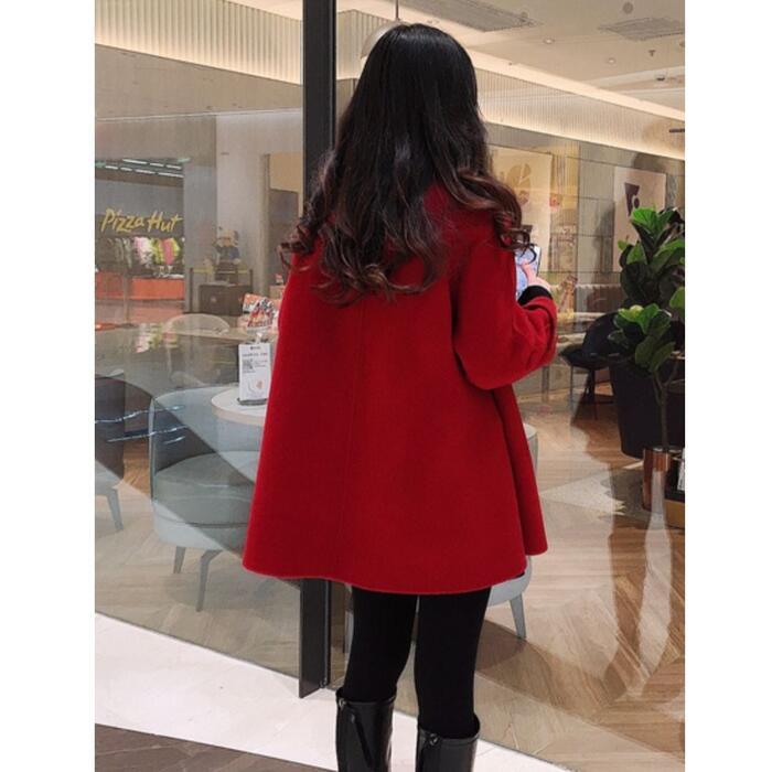 全3色 ウール混 アウター ジャケット コート ステンカラー アシンメトリー レディース エレガント きれいめ カジュアル ミディ丈 おしゃれ 長袖 大人 可愛い フレア ゆったり 体型カバー レッド 赤 ブラック 黒 ベージュ 春 秋 冬 20代 30代 40代 50代